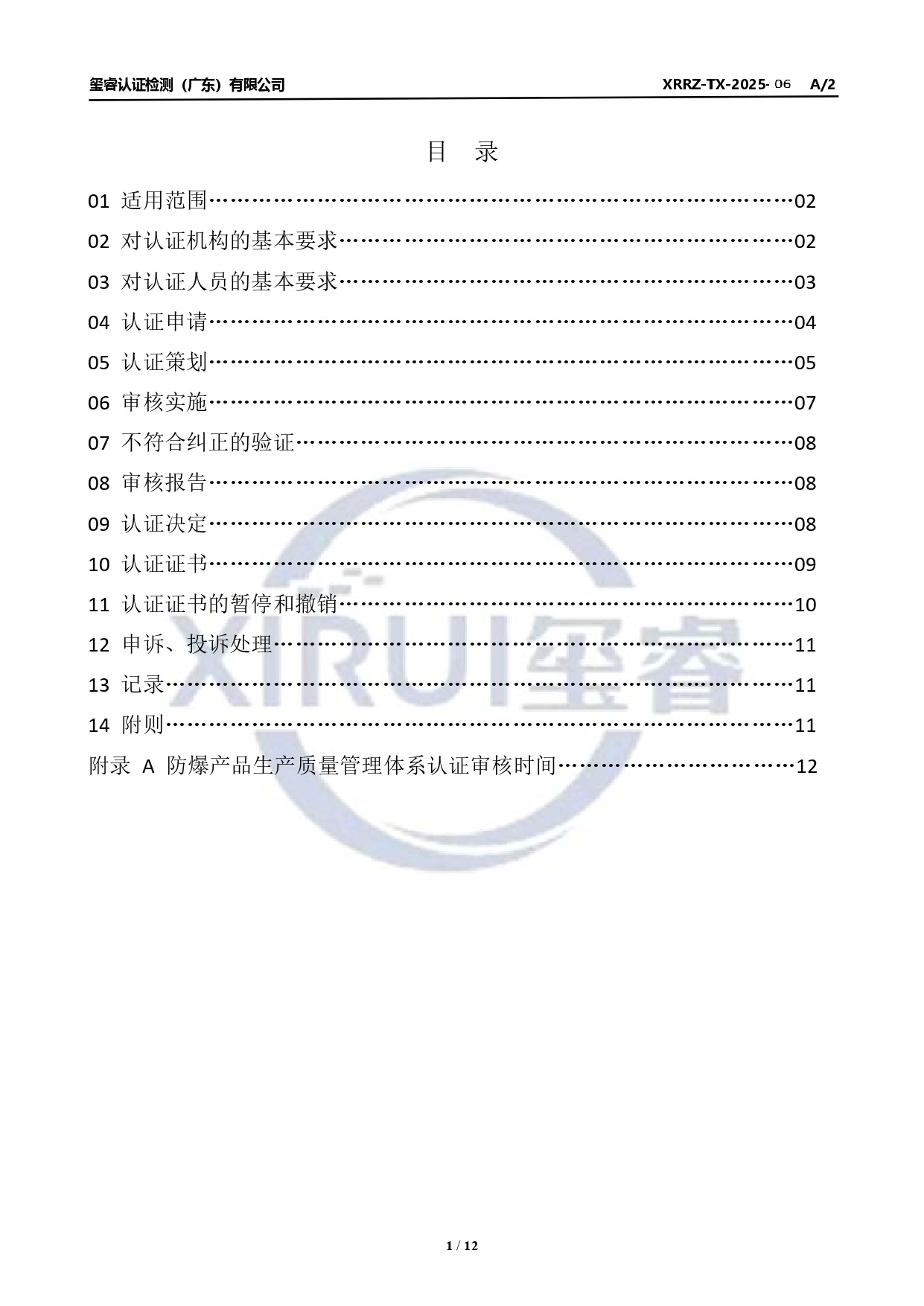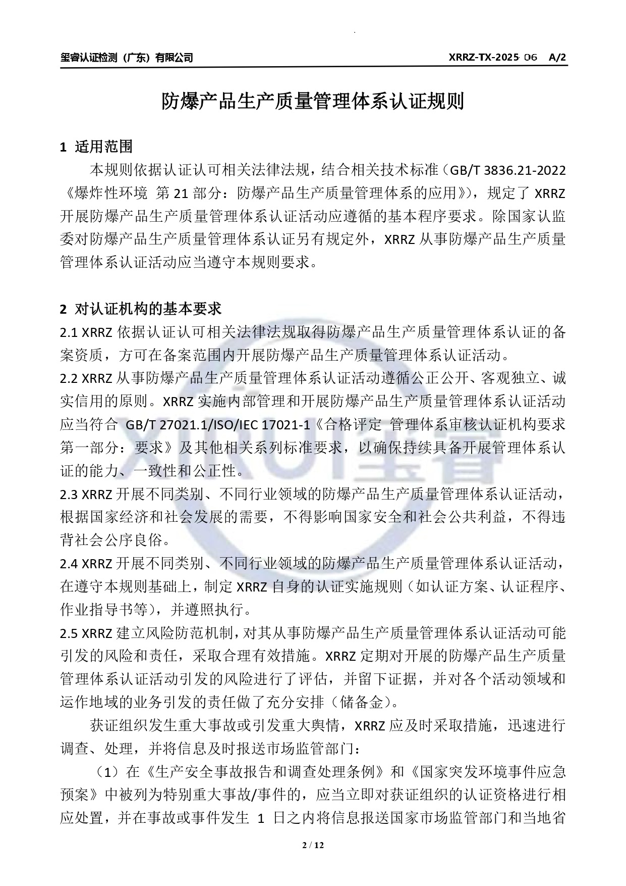XRRZ-TX-2025-06 防爆产品生产质量管理体系认证规则公示