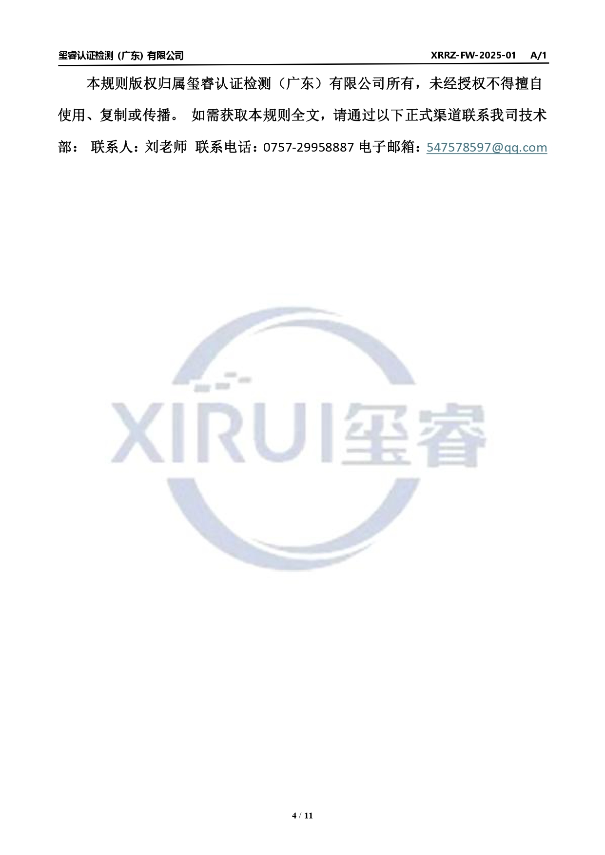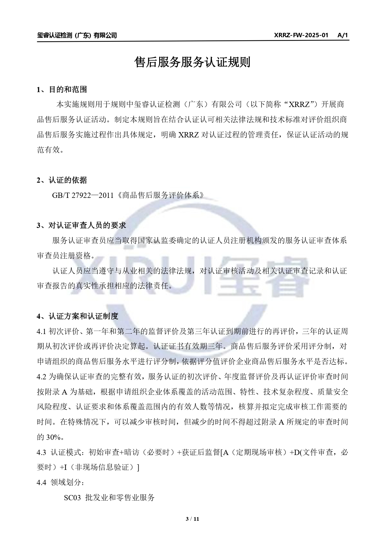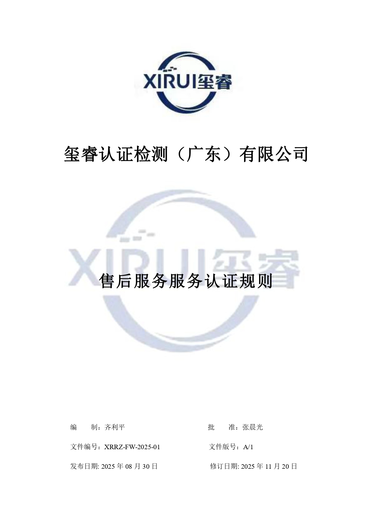 XRRZ-FW-2025-01 商品售后服务认证规则公示