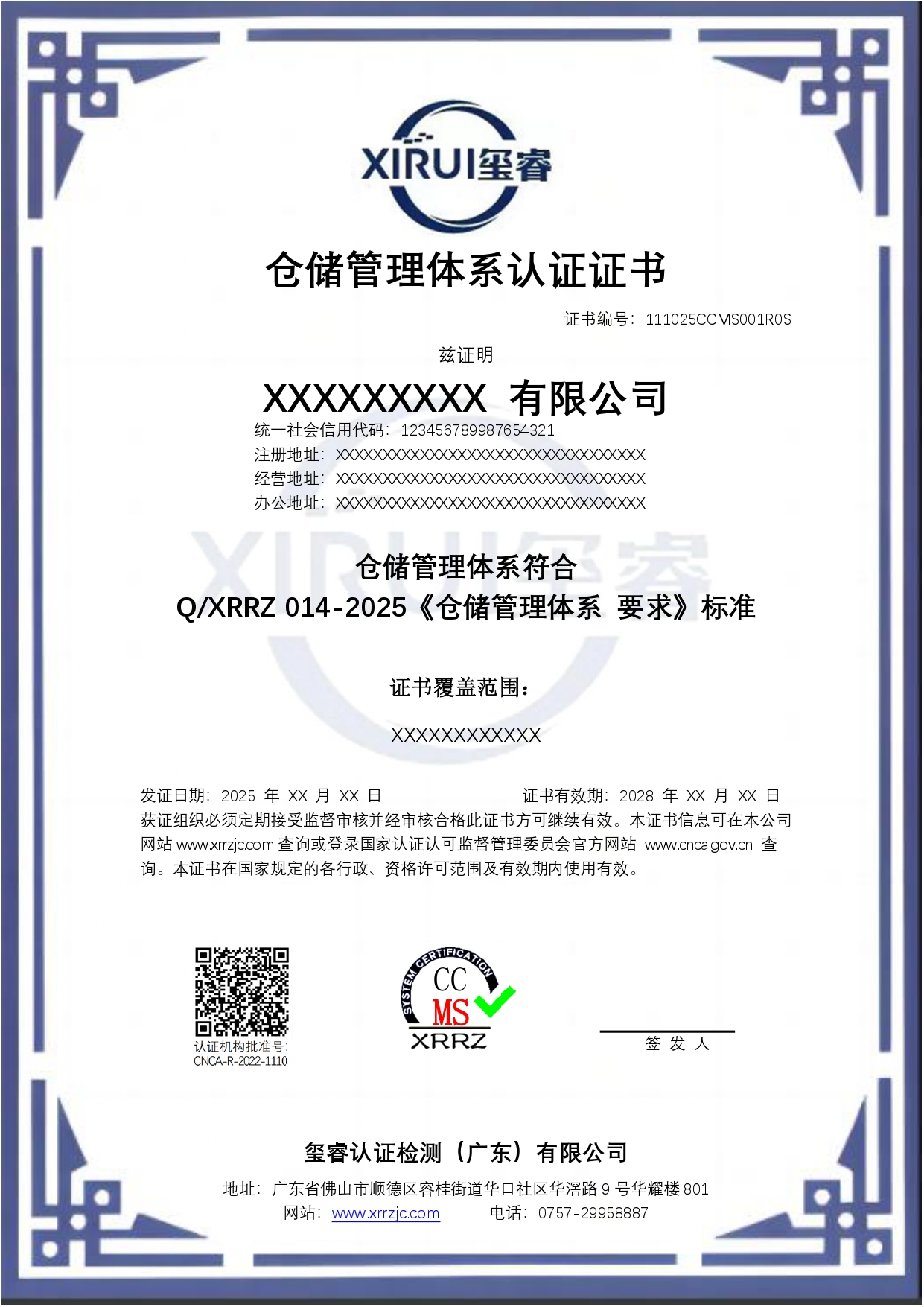 仓储管理体系认证证书