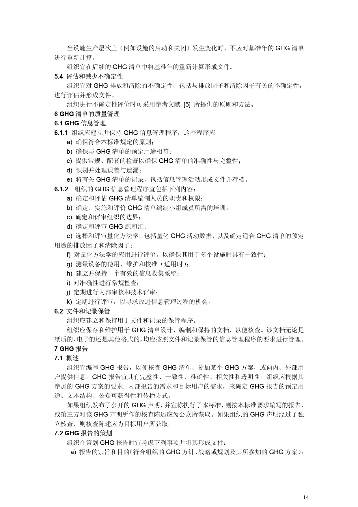 温室气体第一部分组织层次上对温室气体排放和清除的量化和报告规范及指南