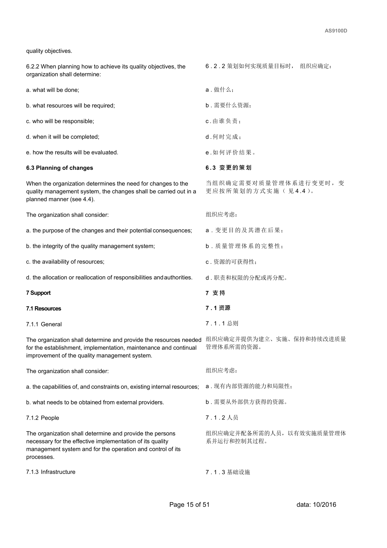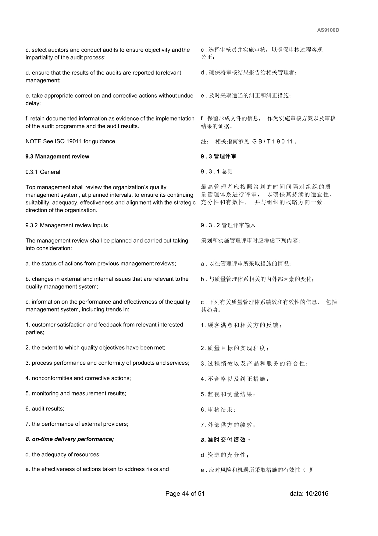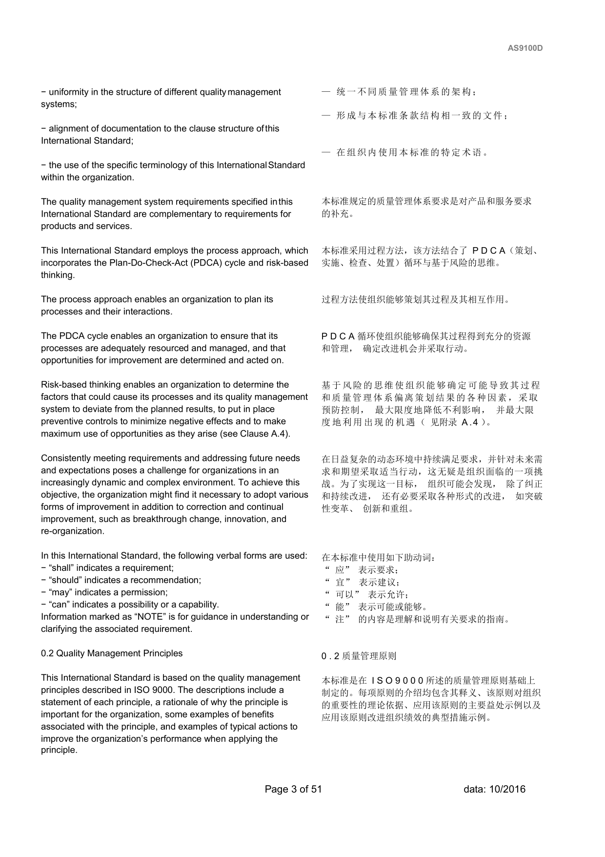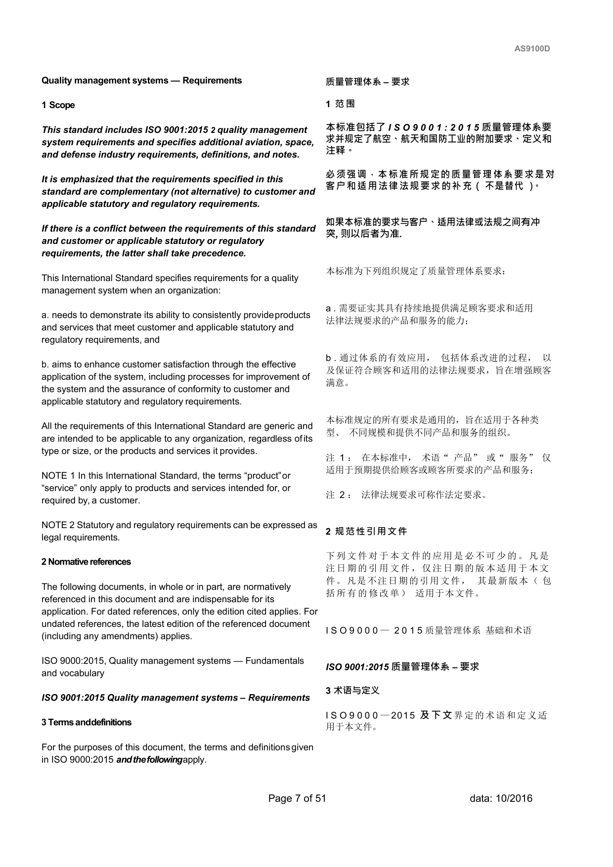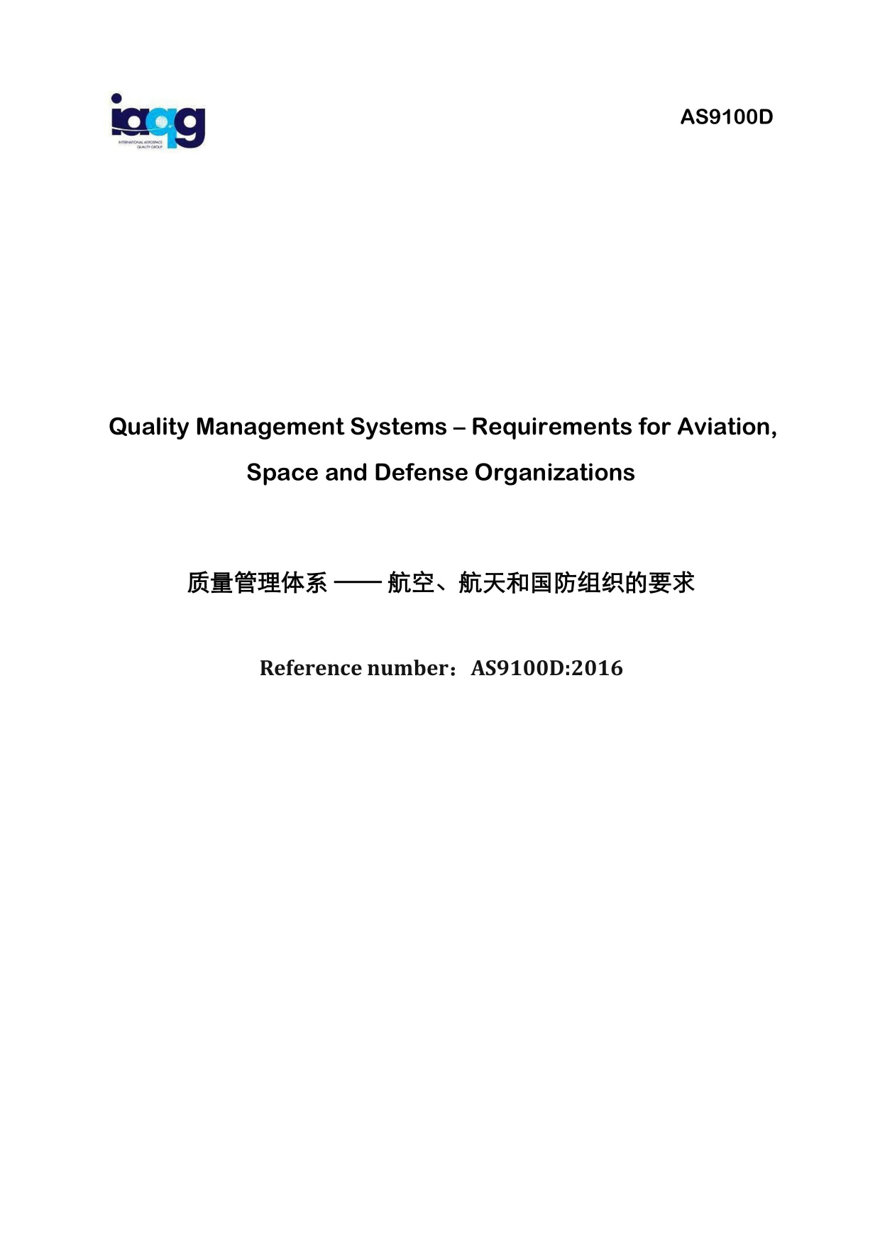 AS9100D-2016质量管理体系-航空、航天和国防组织的要求