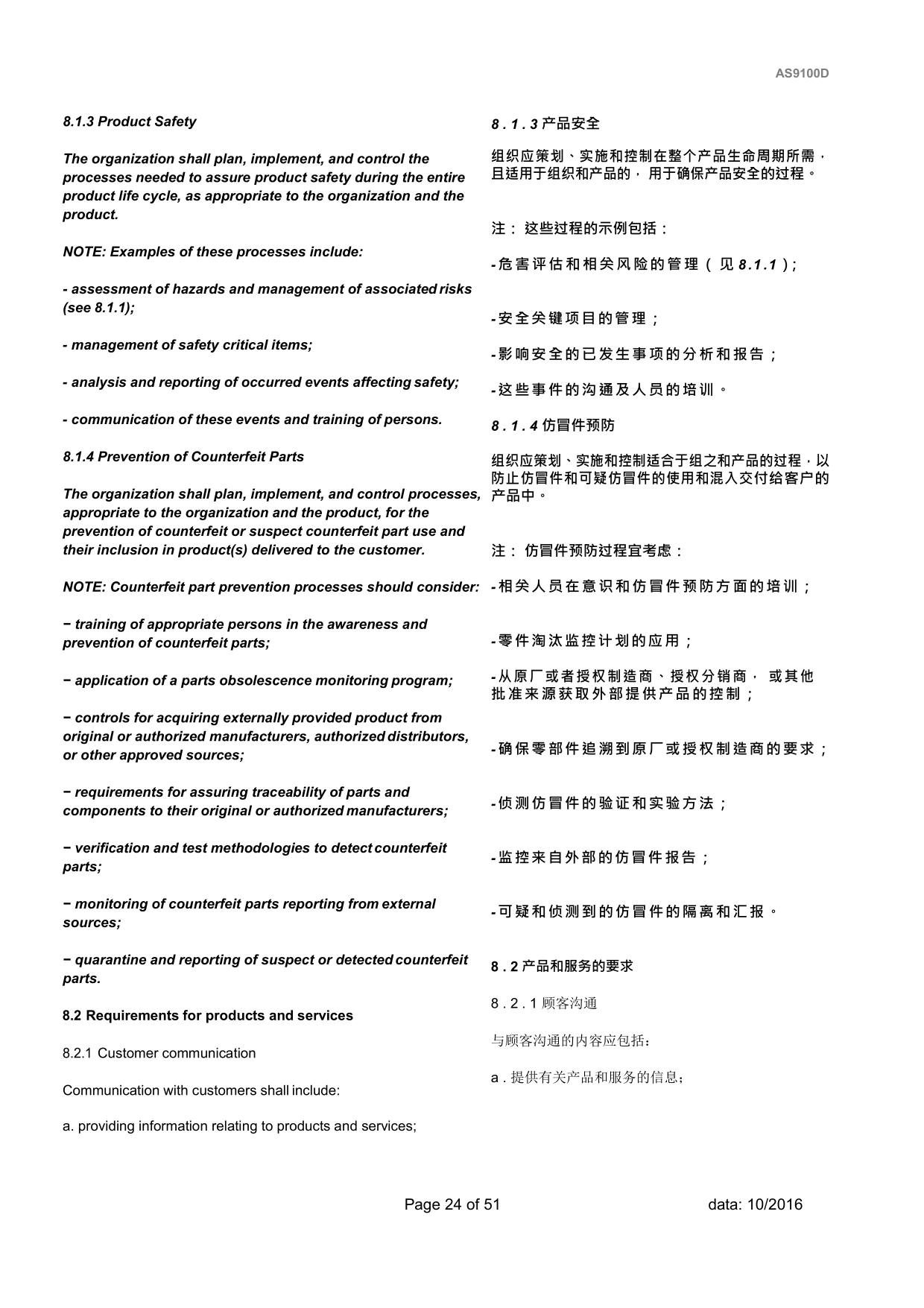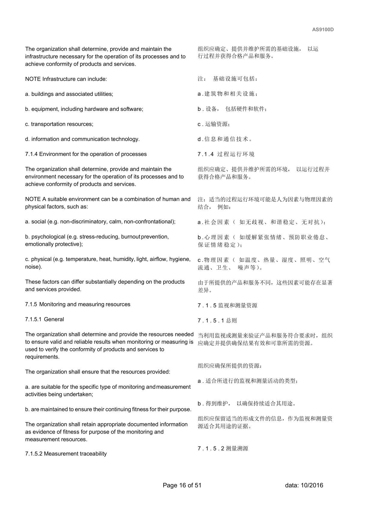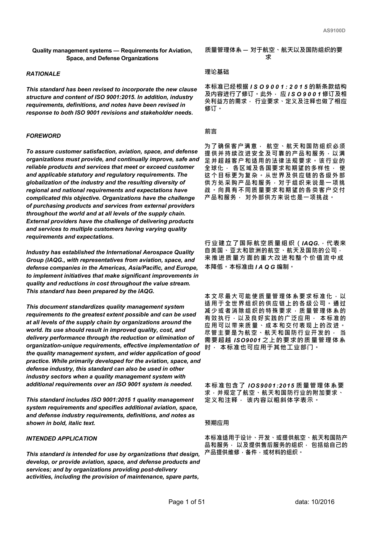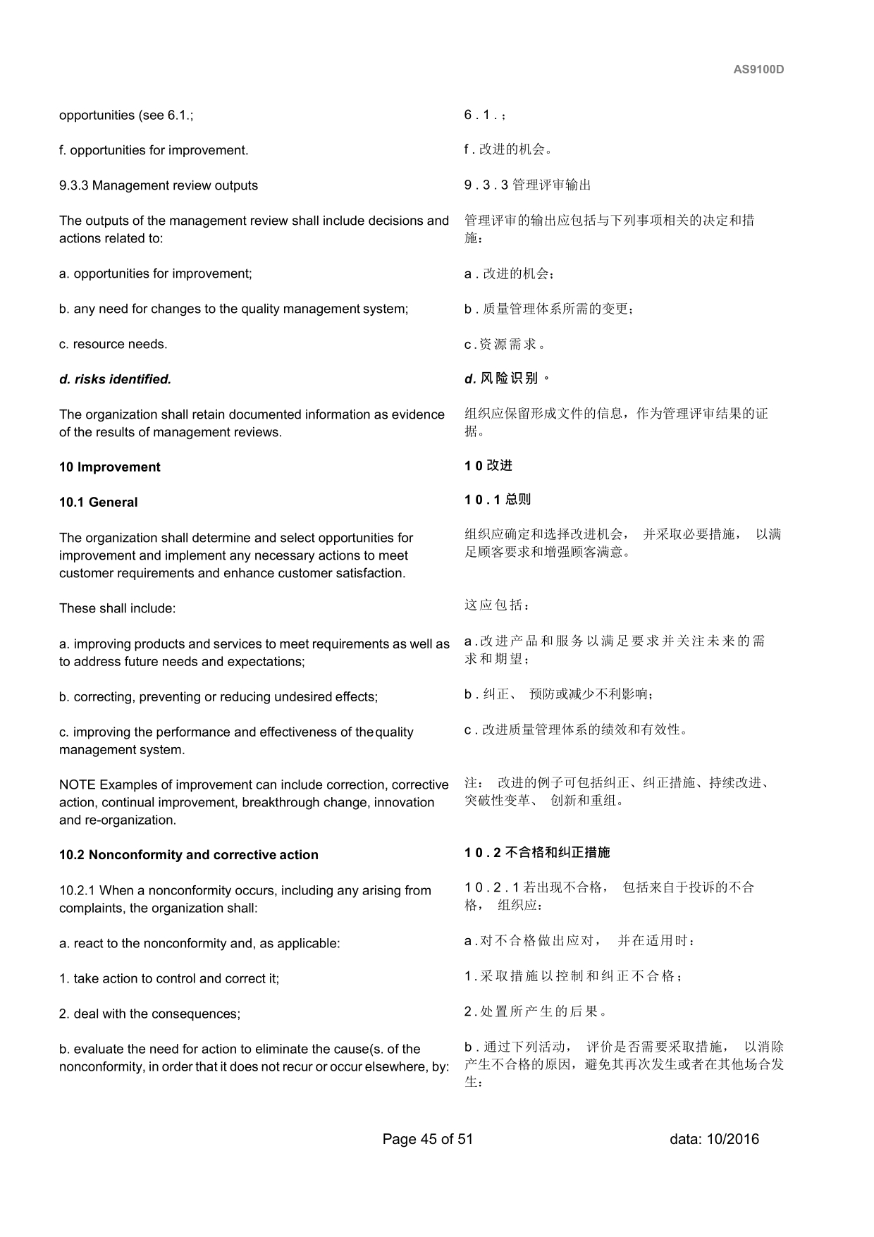 AS9100D-2016质量管理体系-航空、航天和国防组织的要求
