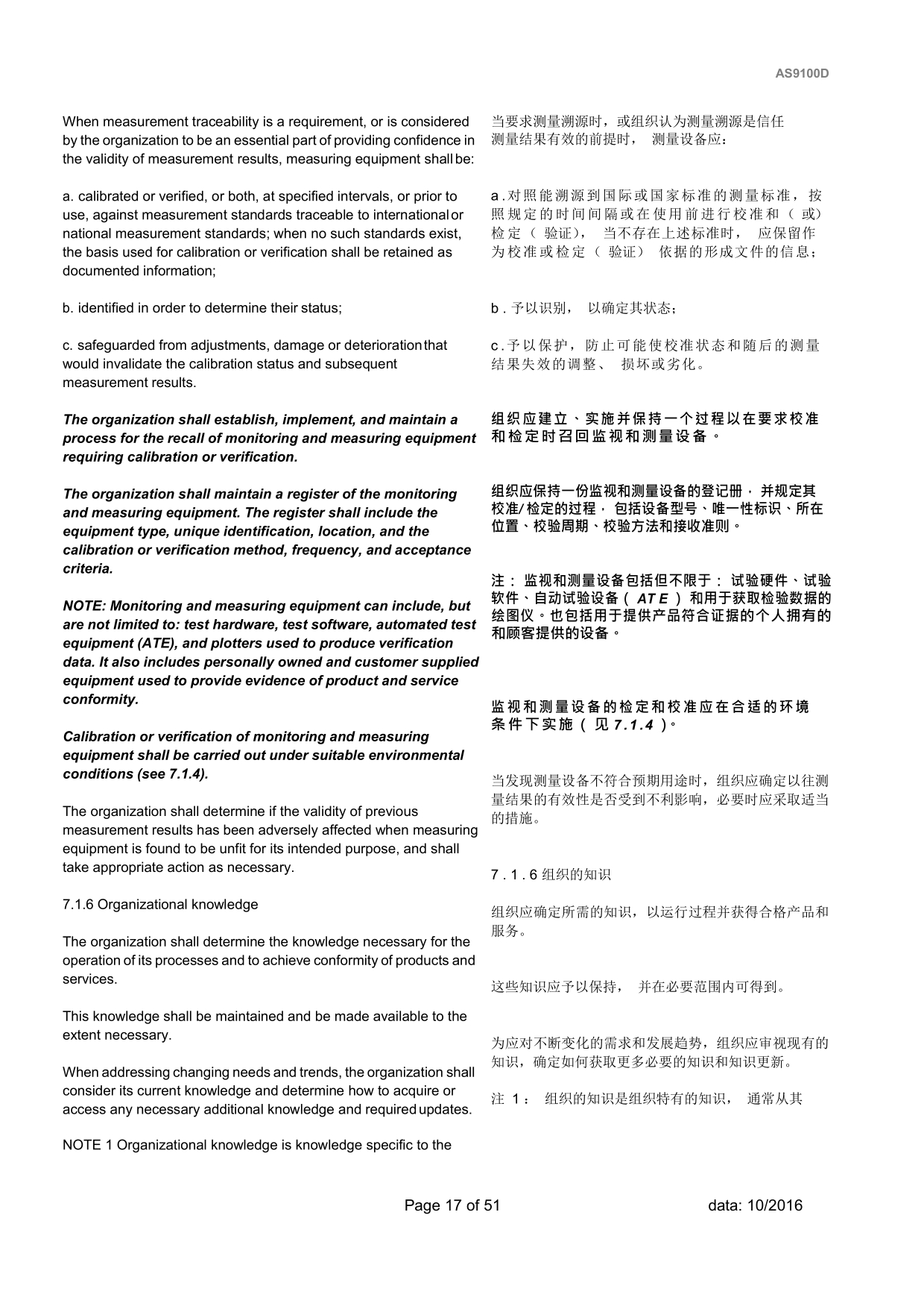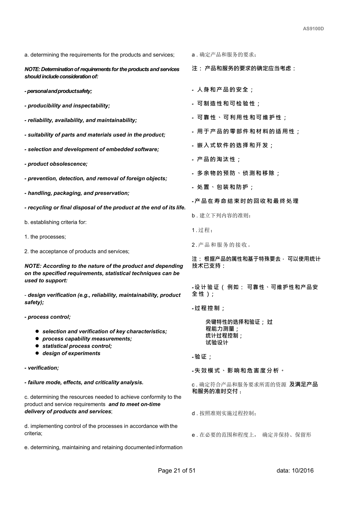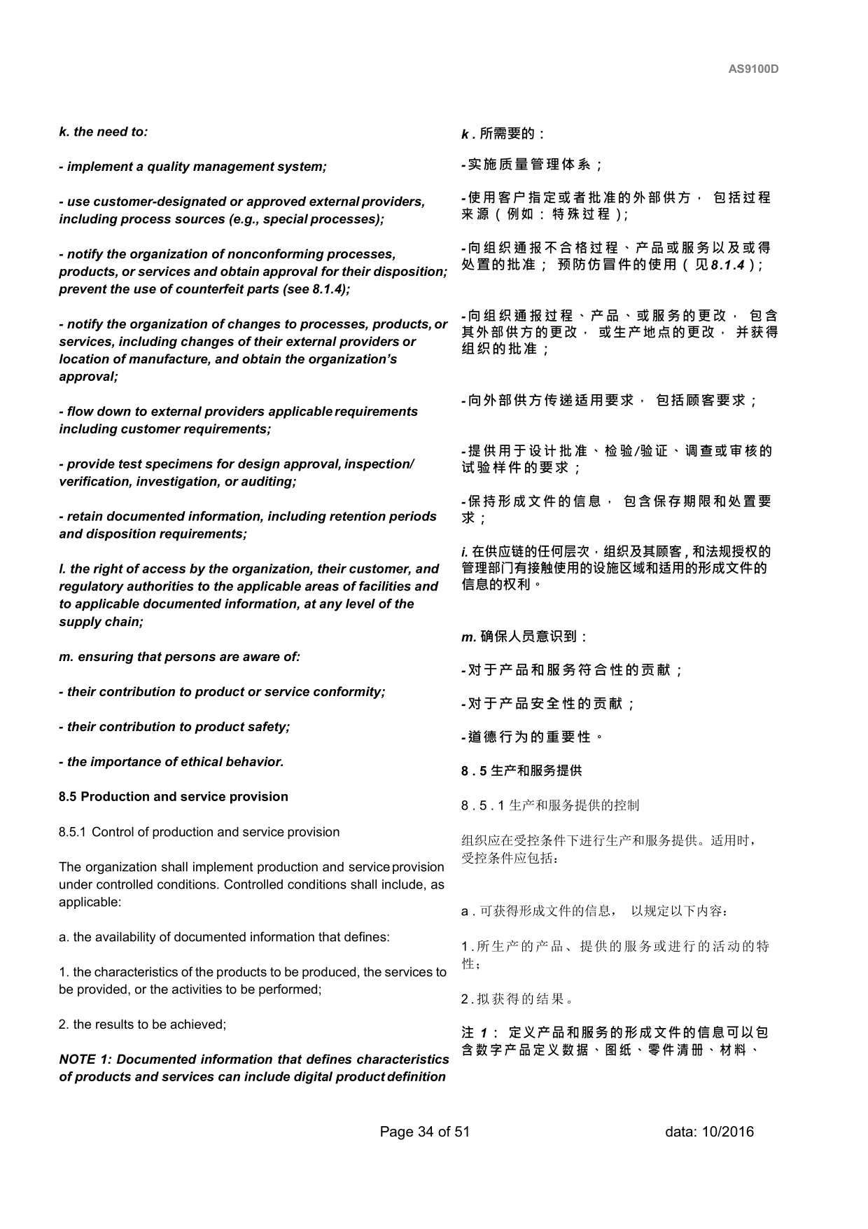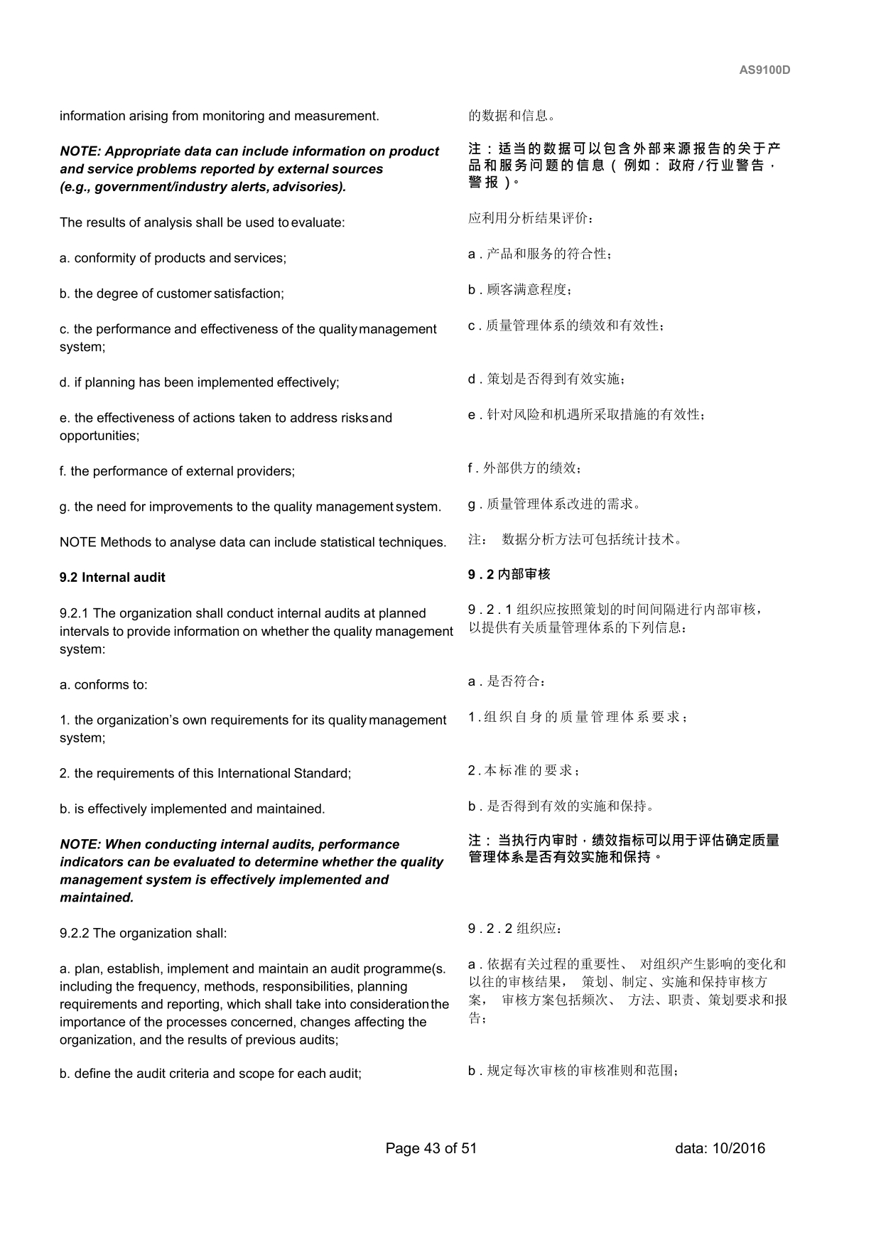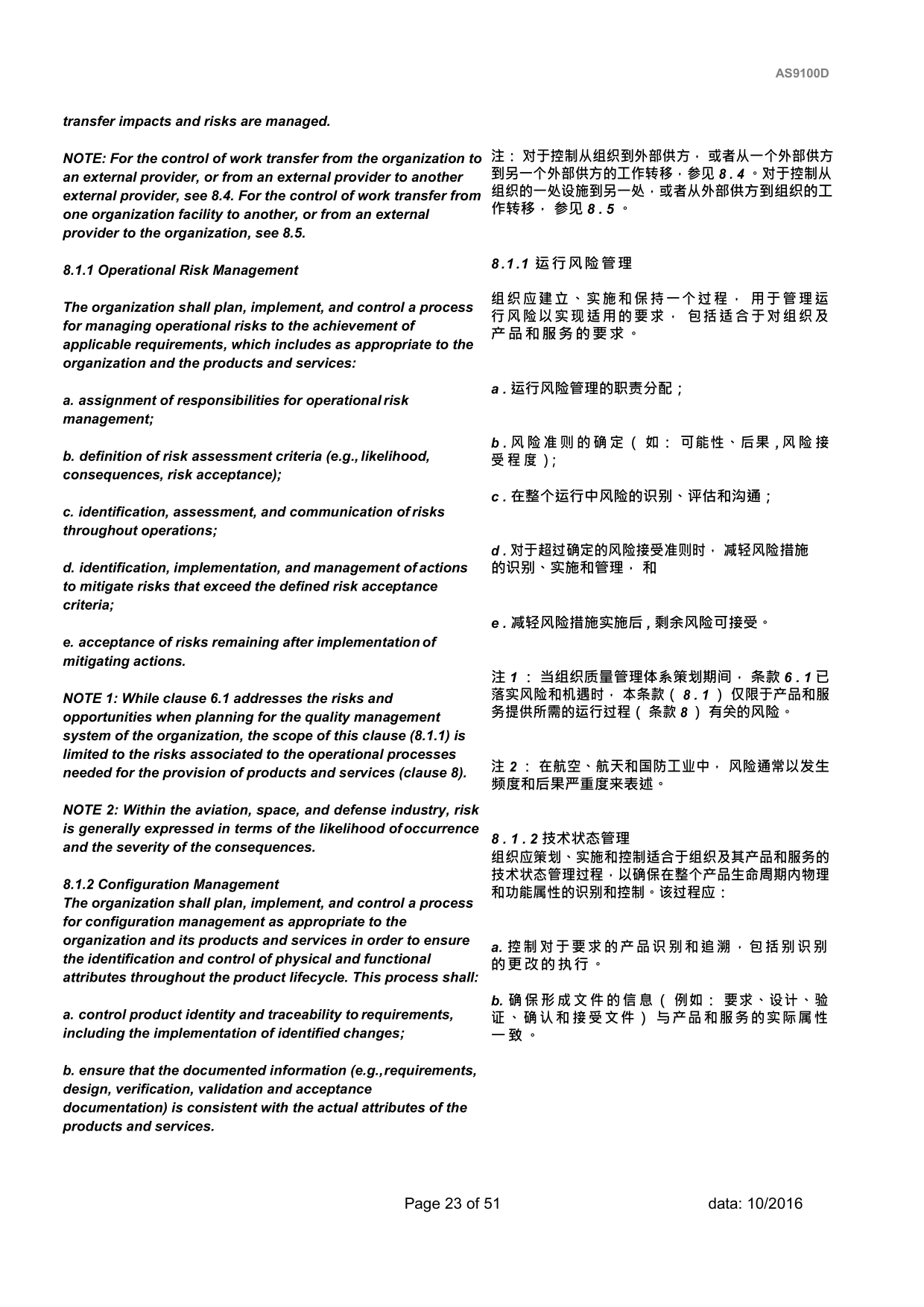 AS9100D-2016质量管理体系-航空、航天和国防组织的要求