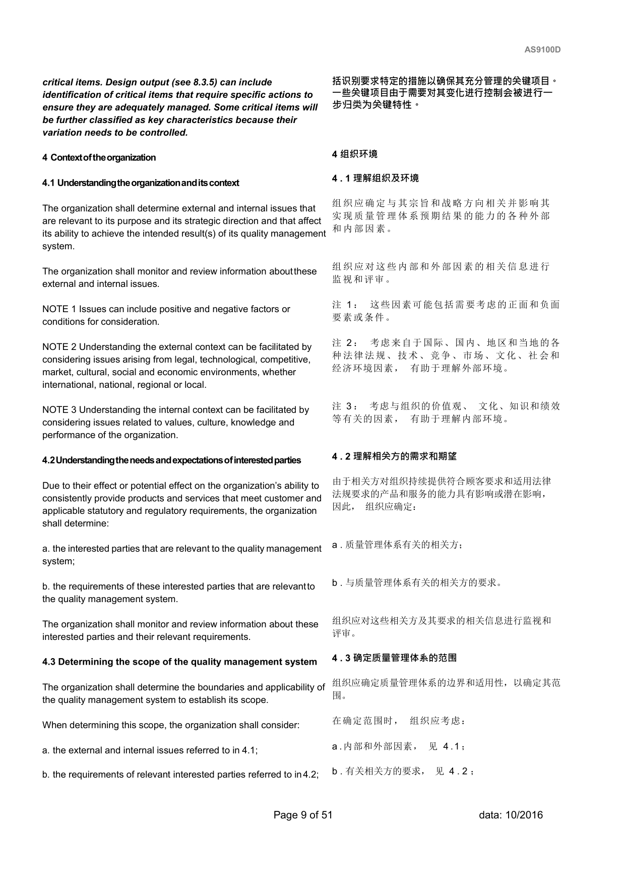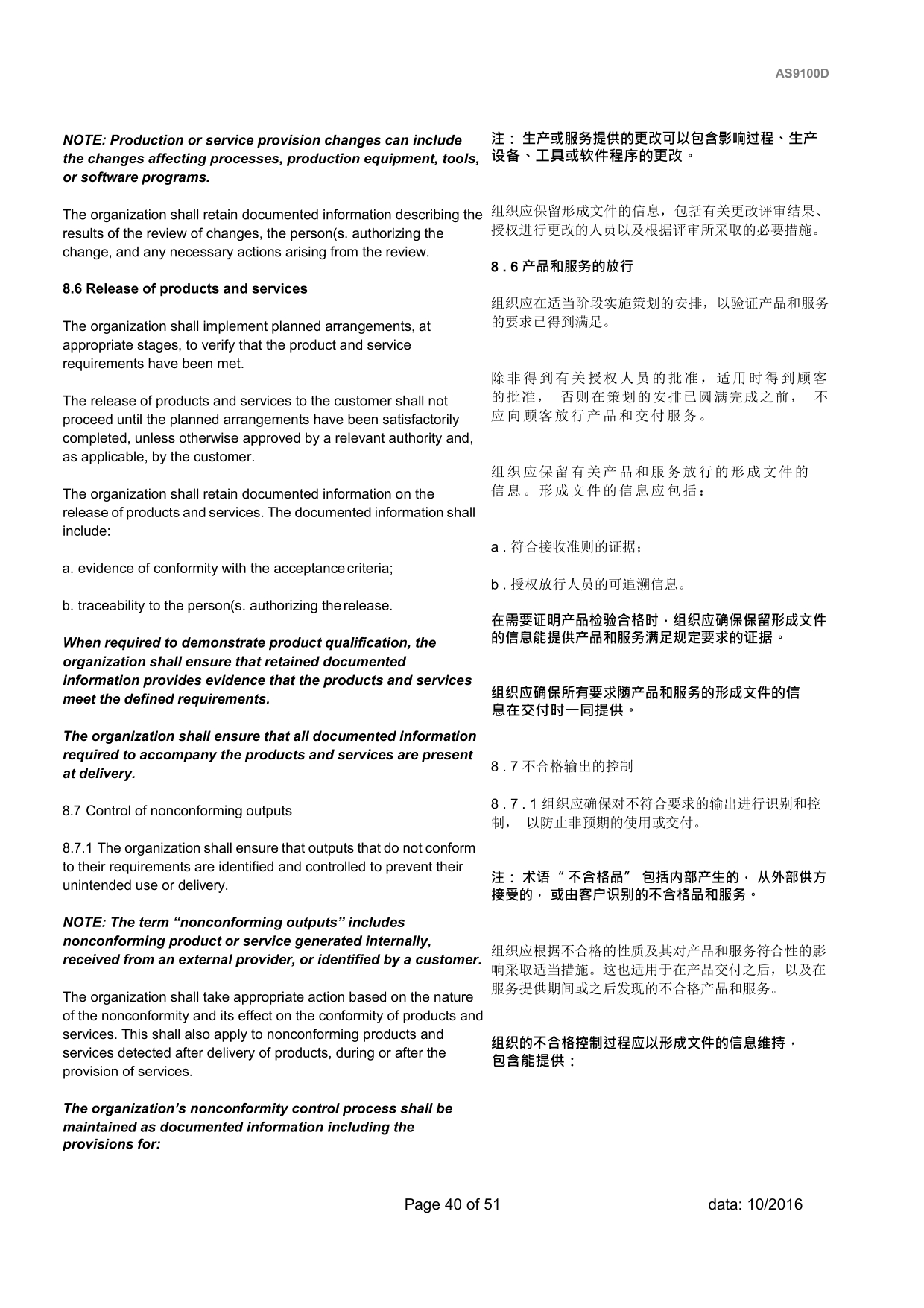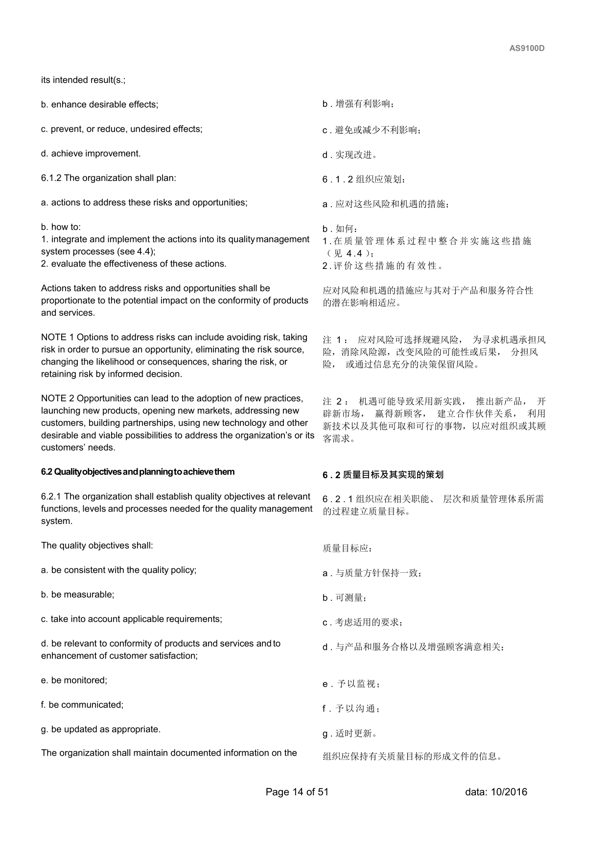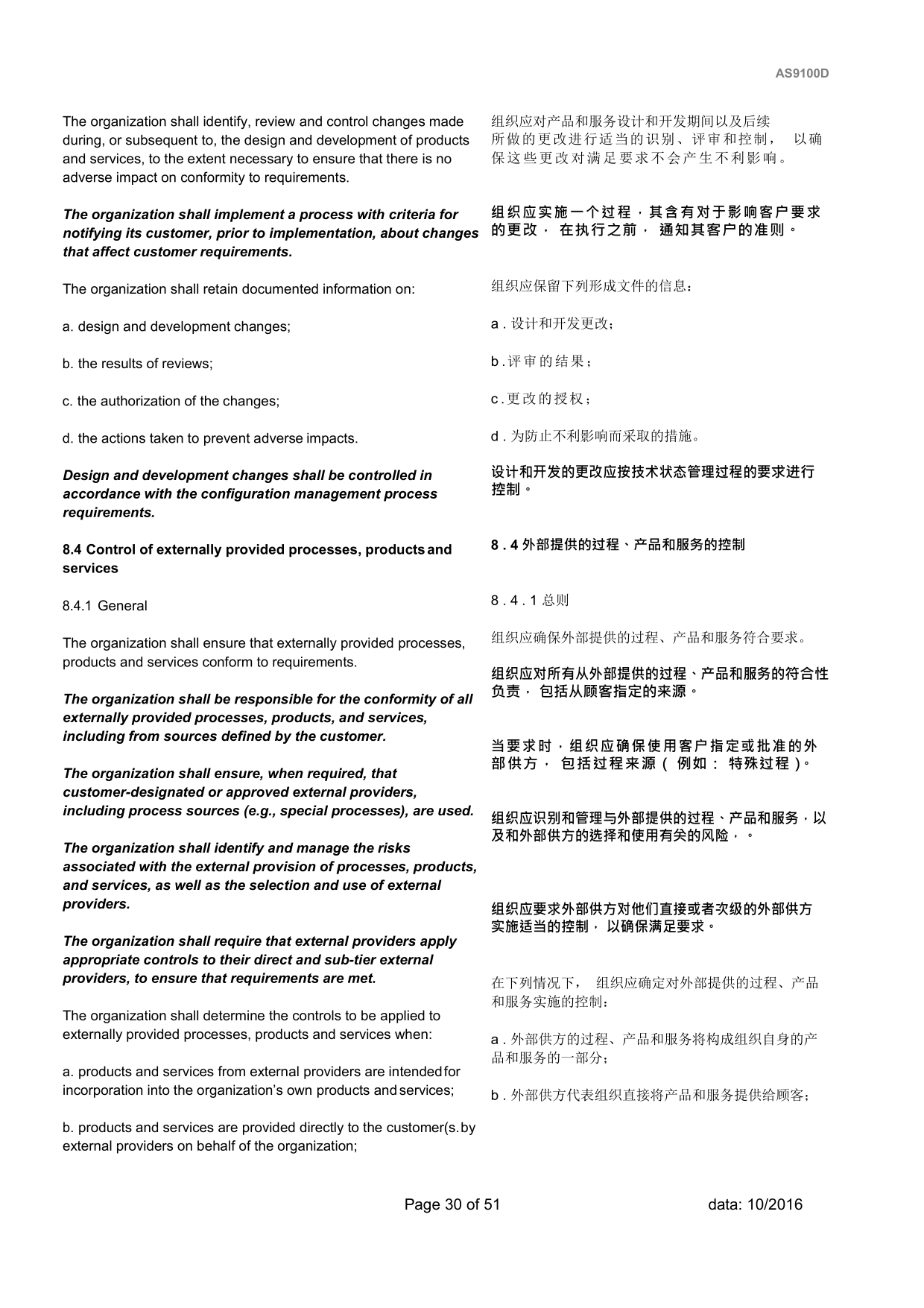 AS9100D-2016质量管理体系-航空、航天和国防组织的要求