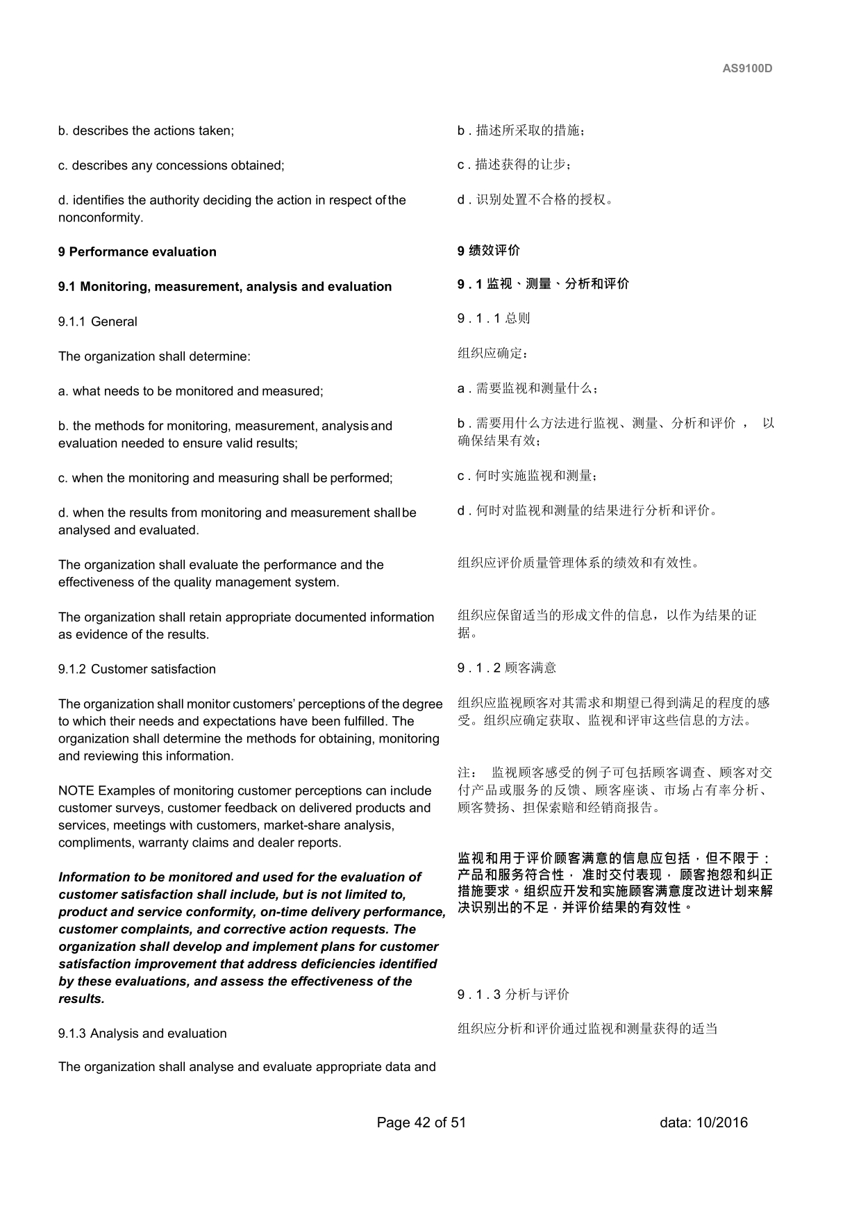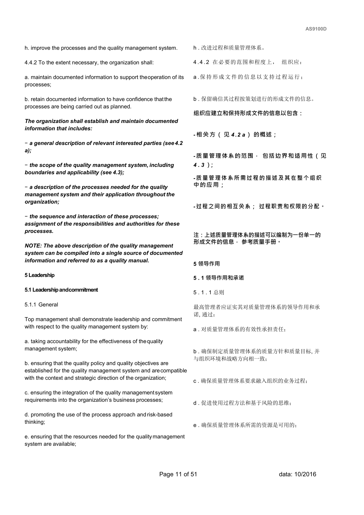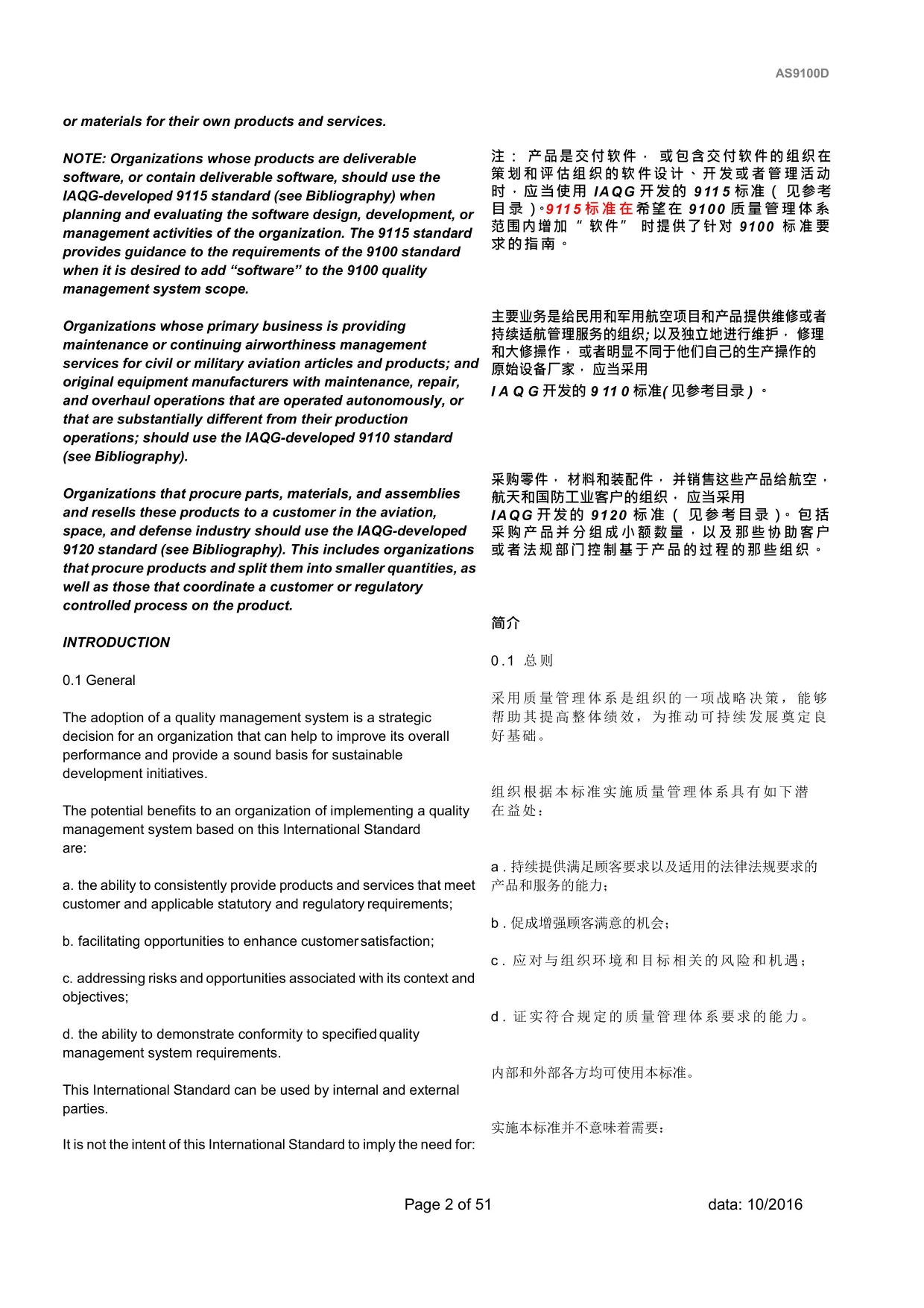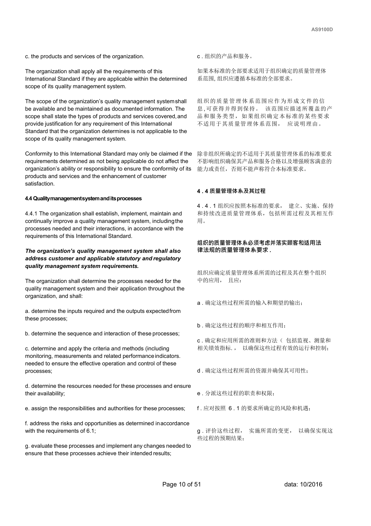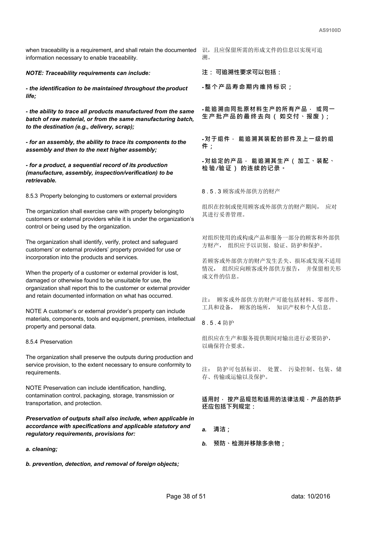 AS9100D-2016质量管理体系-航空、航天和国防组织的要求