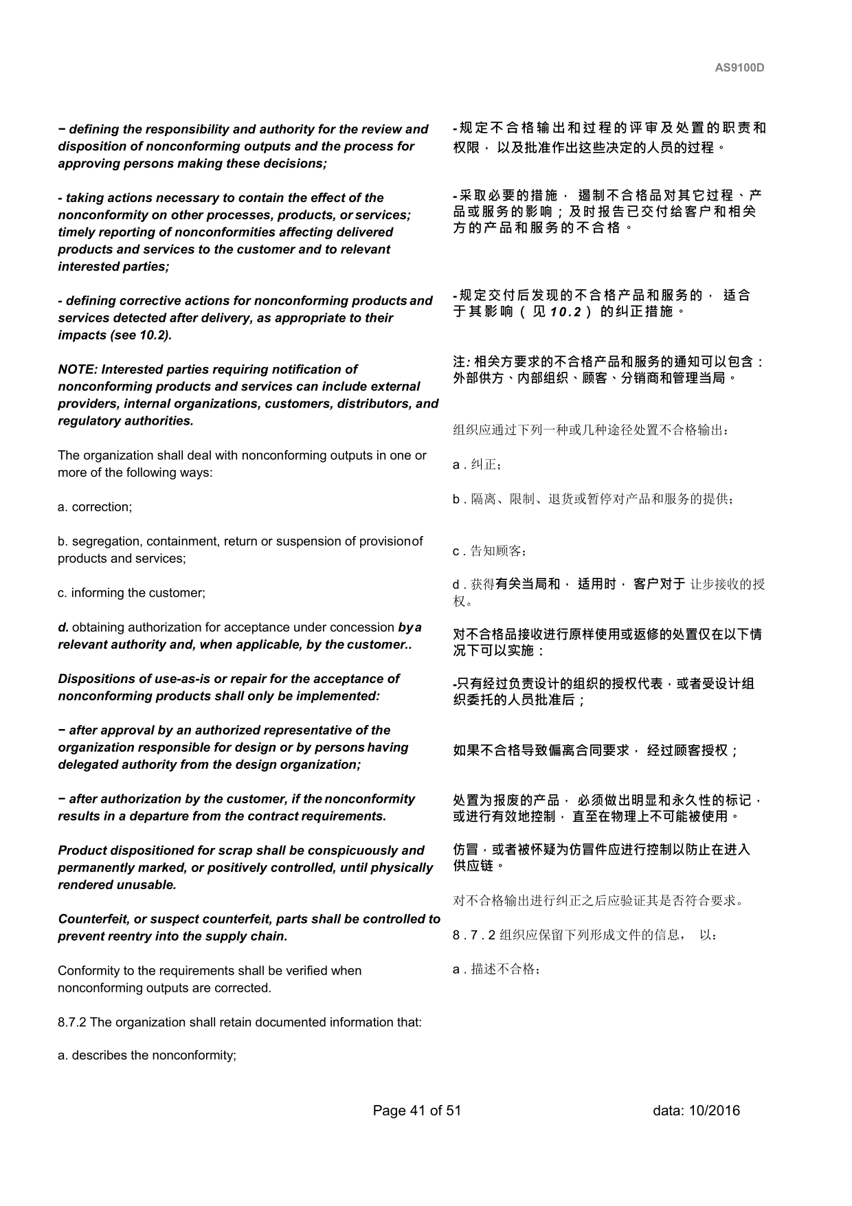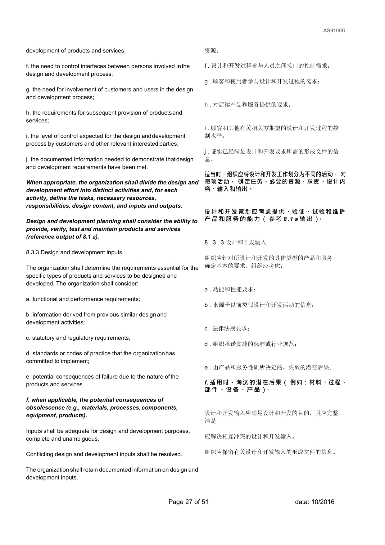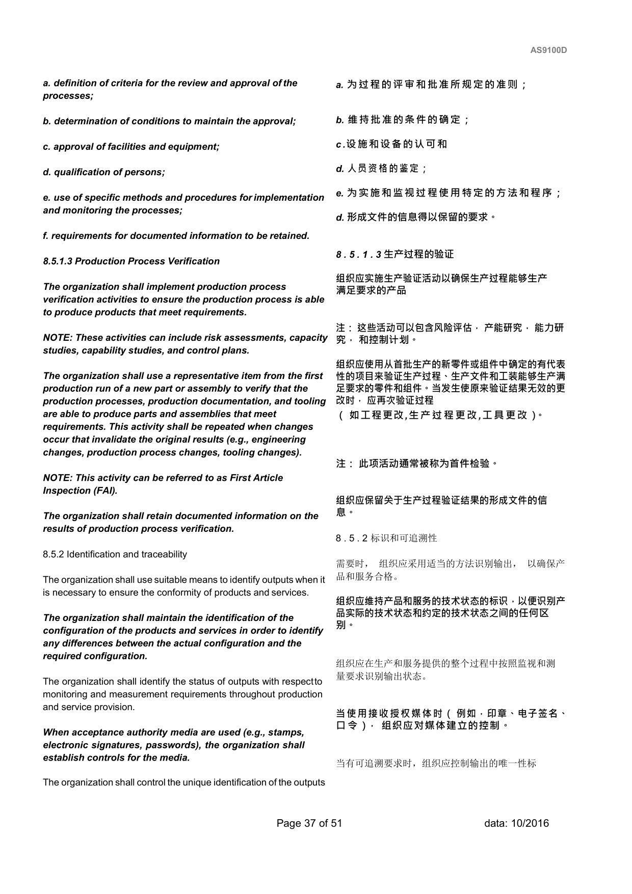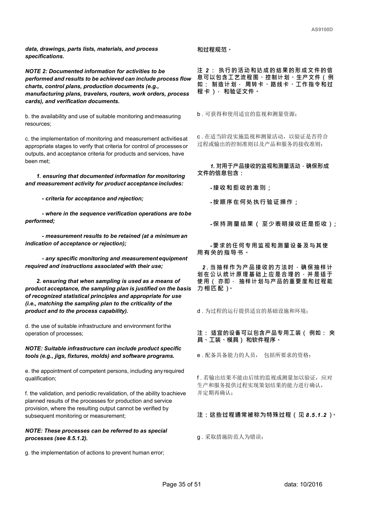 AS9100D-2016质量管理体系-航空、航天和国防组织的要求