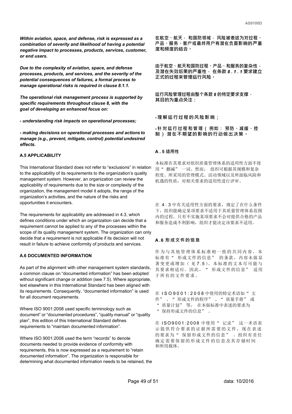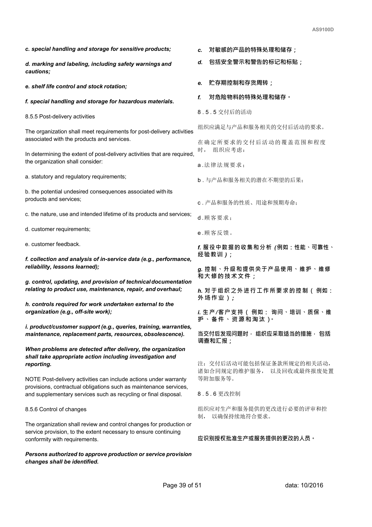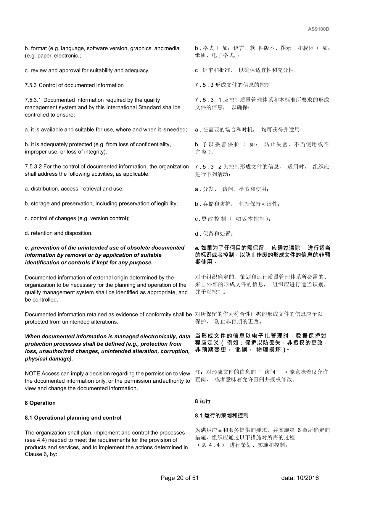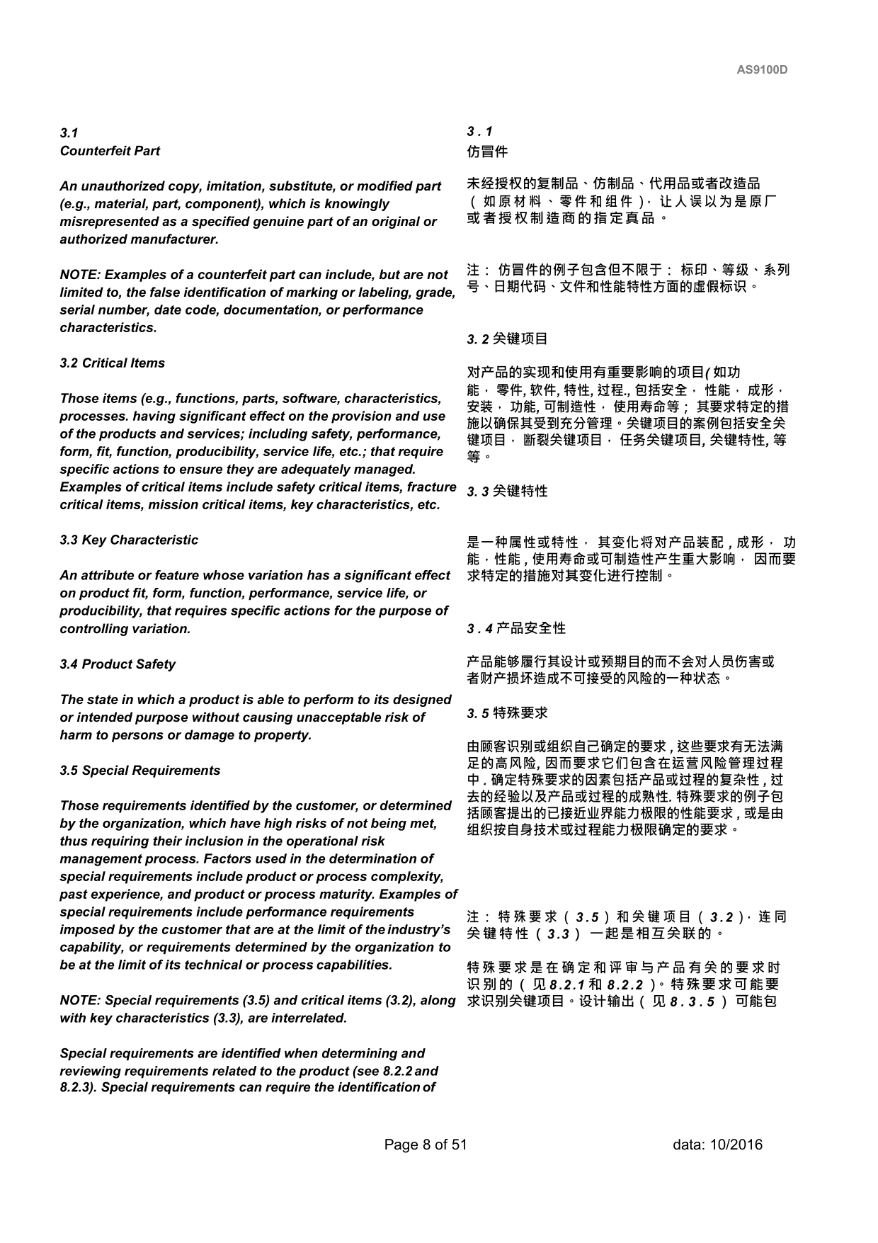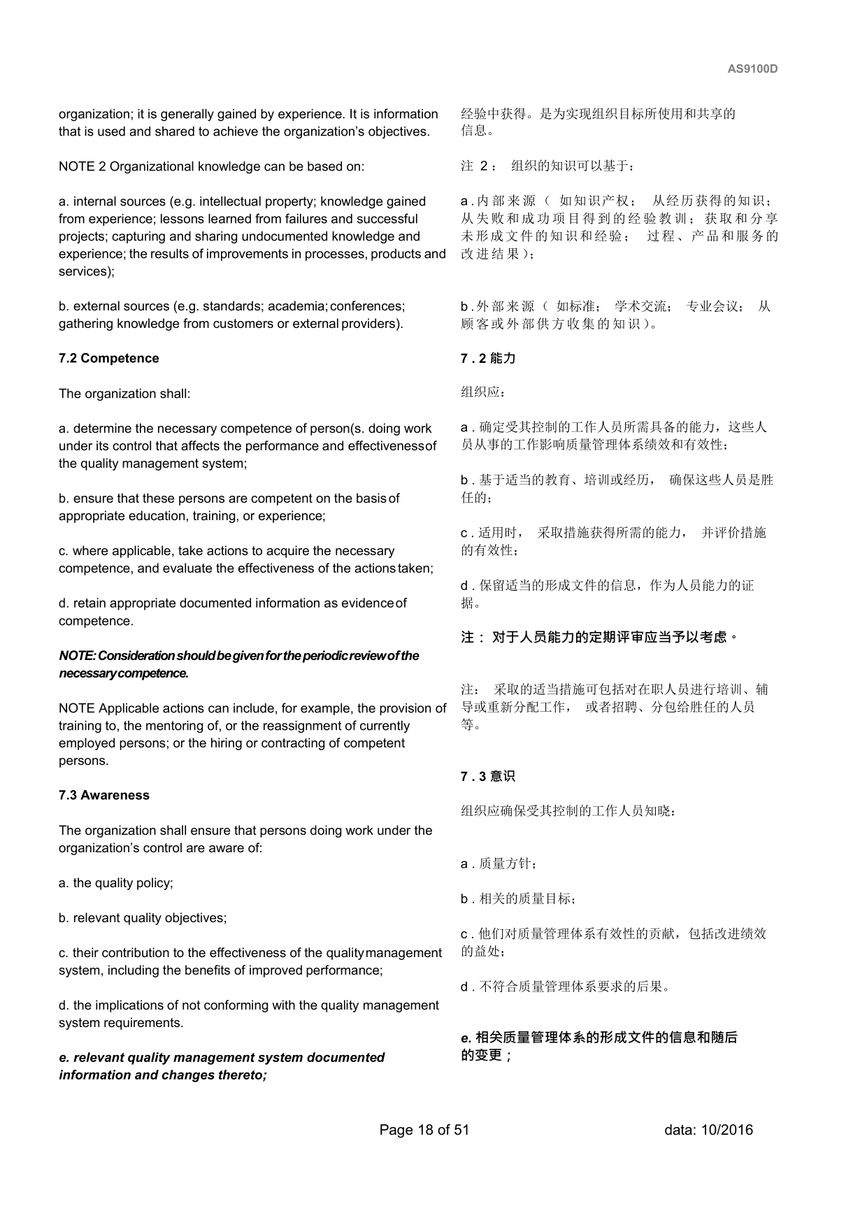 AS9100D-2016质量管理体系-航空、航天和国防组织的要求