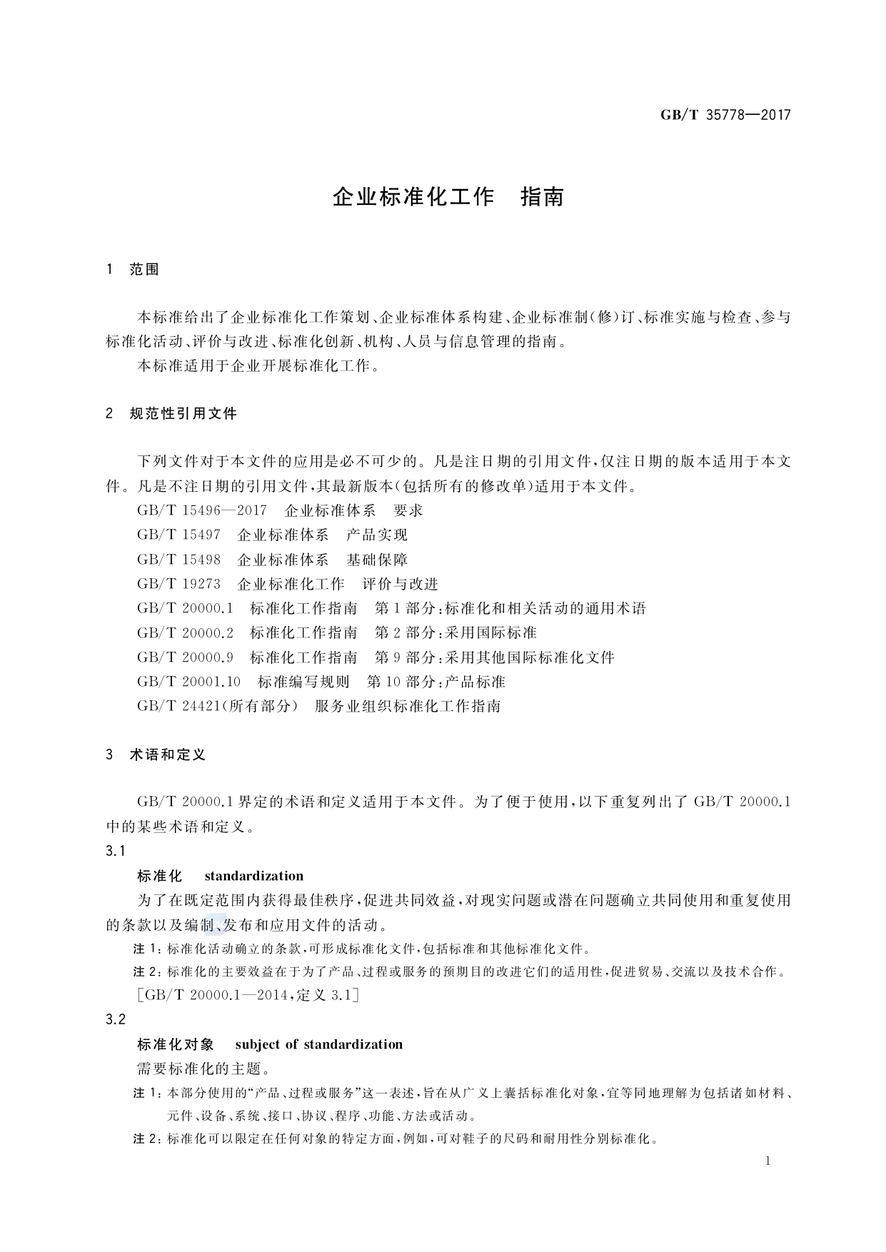 GB-T 35778-2017企业标准化工作指南