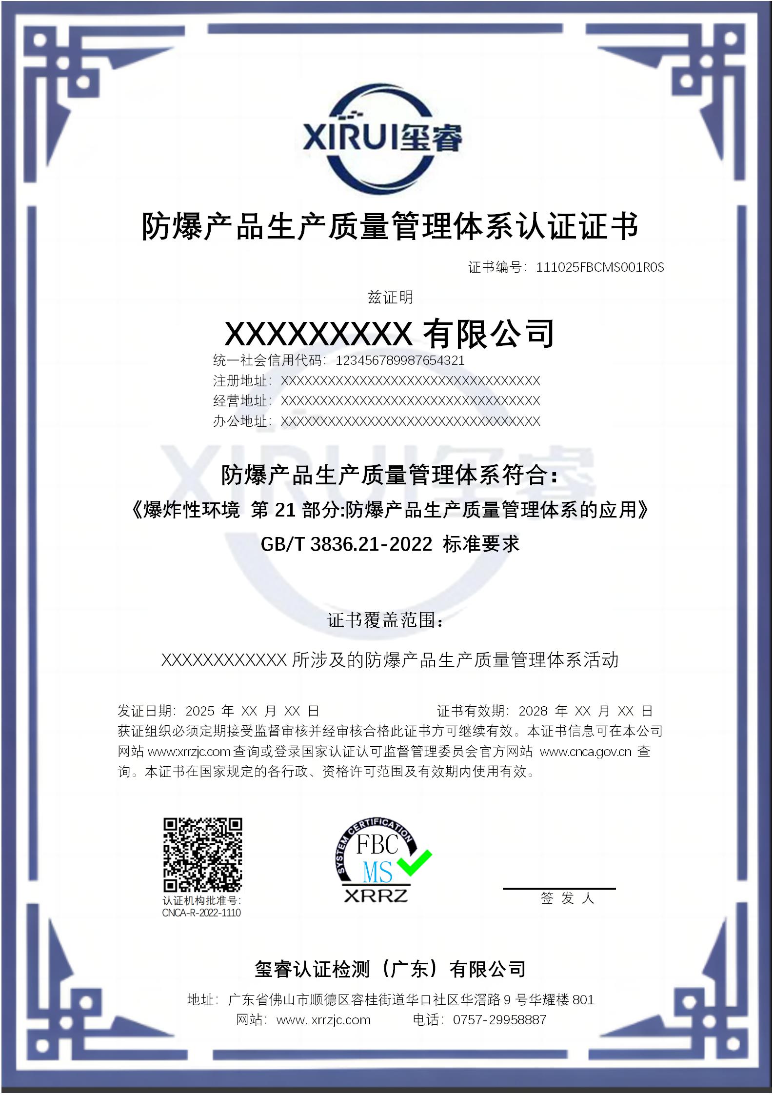 XRRZ-TX-2025-06 防爆产品生产质量管理体系认证规则公示