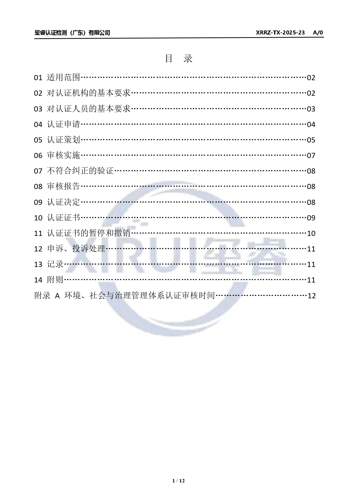 XRRZ-TX-2025-23环境、社会与治理管理体系认证规则公示