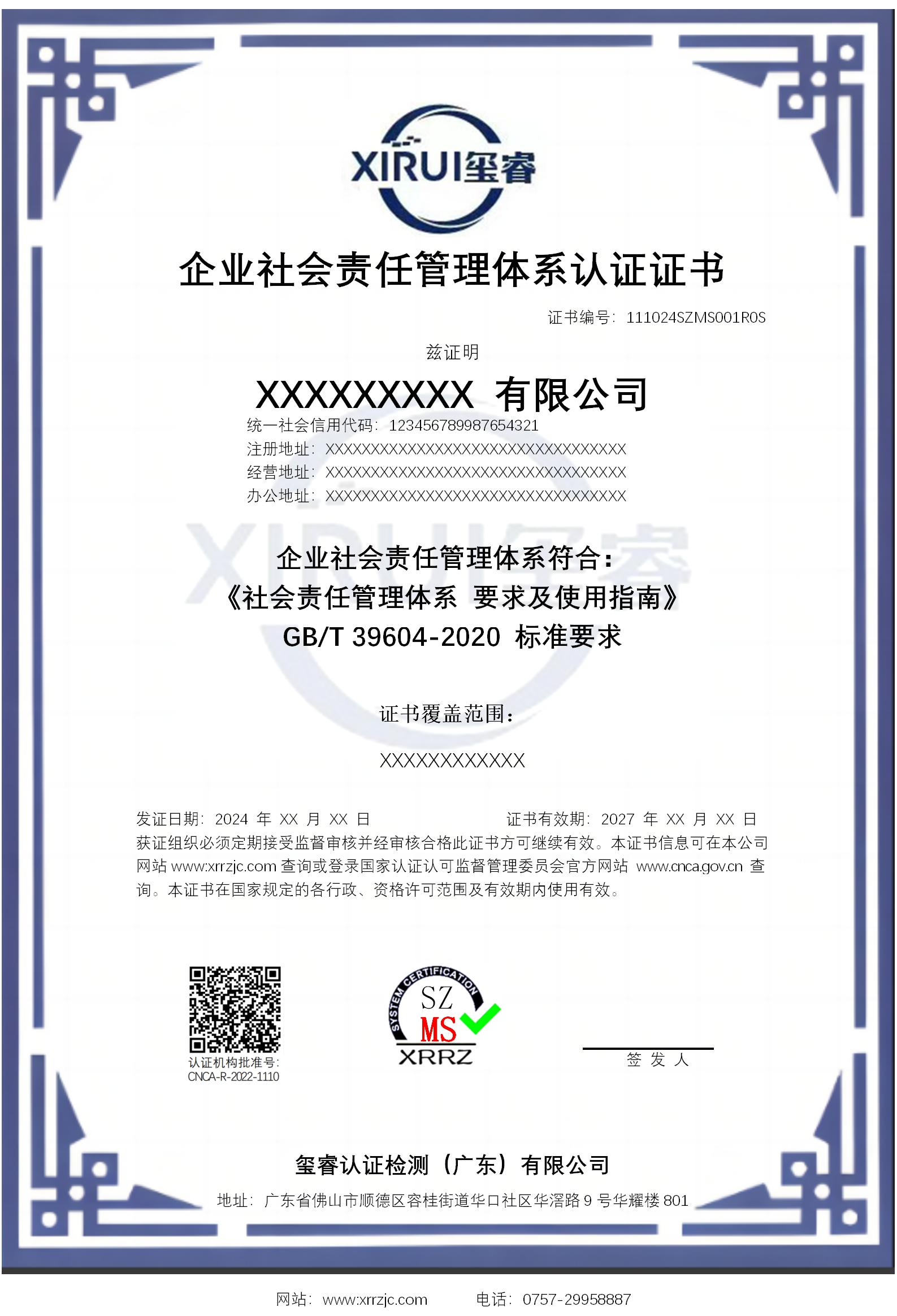 企业社会责任管理体系认证证书