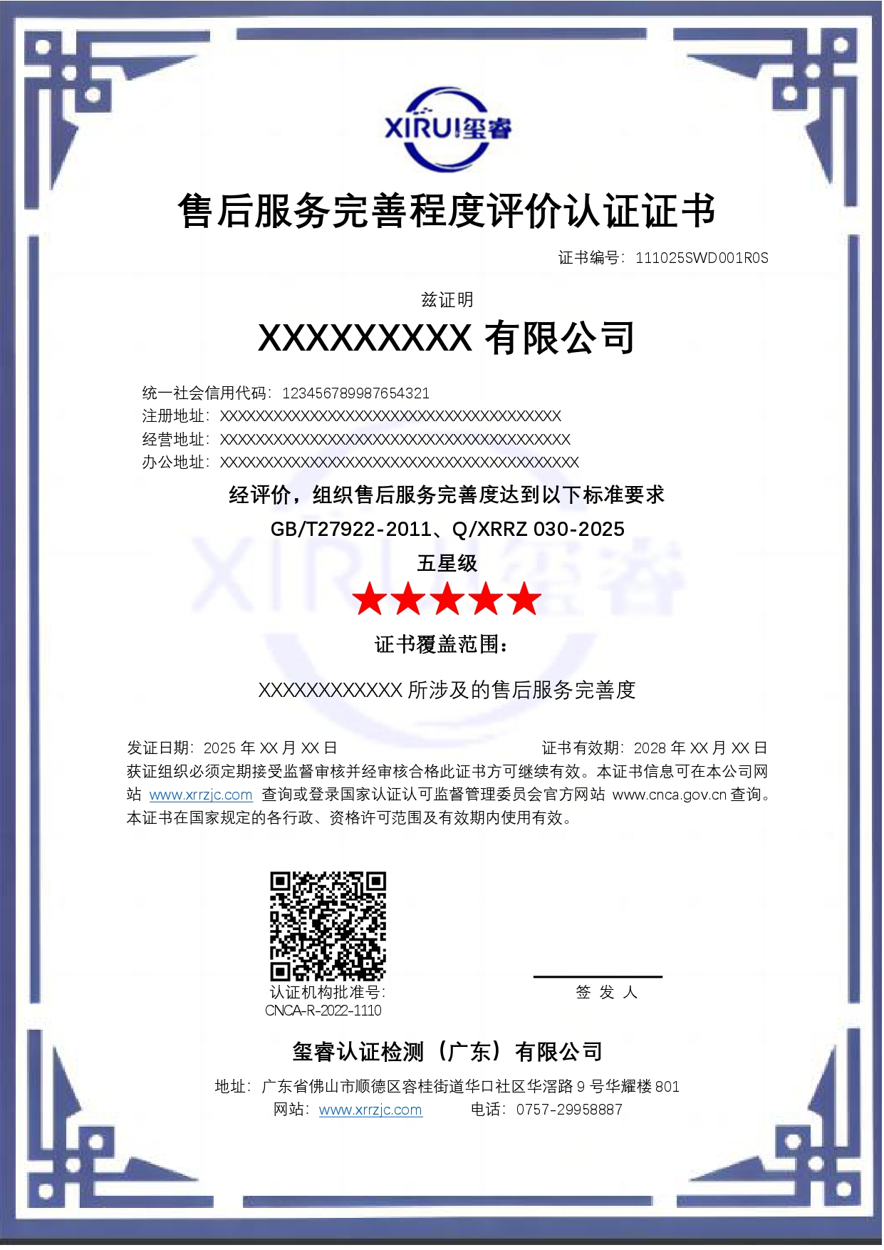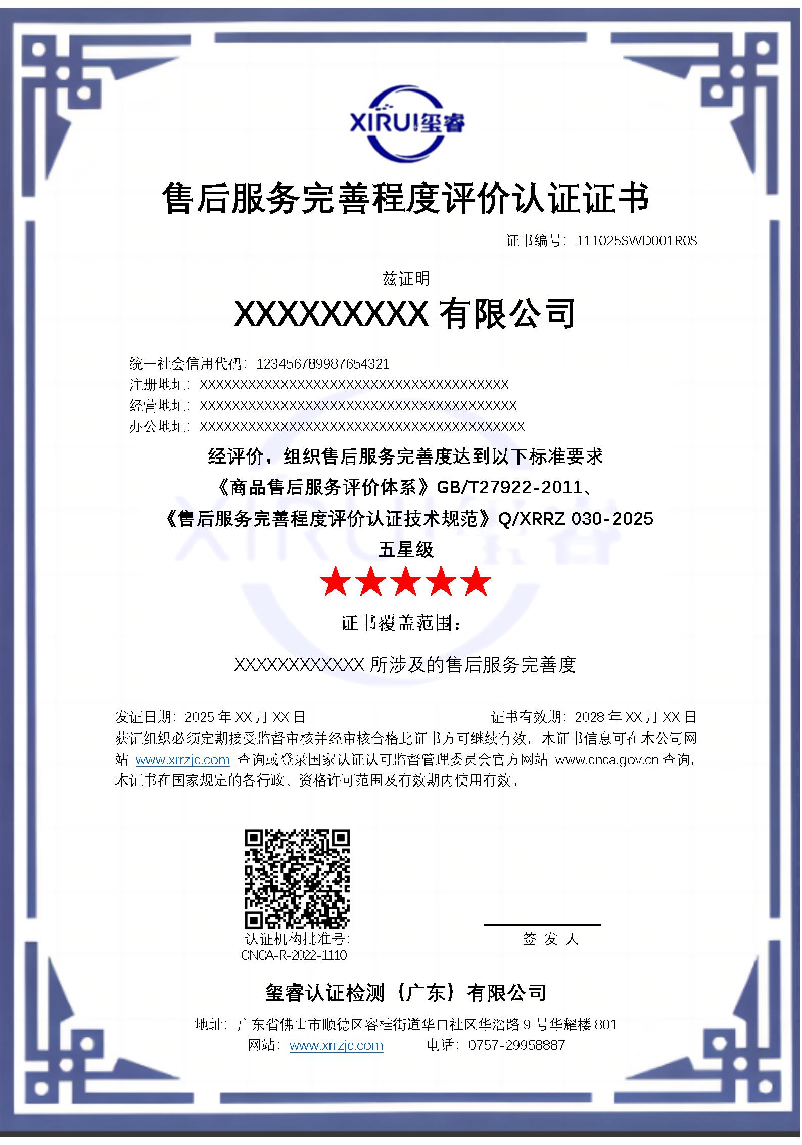 售后服务完善程度评价认证证书