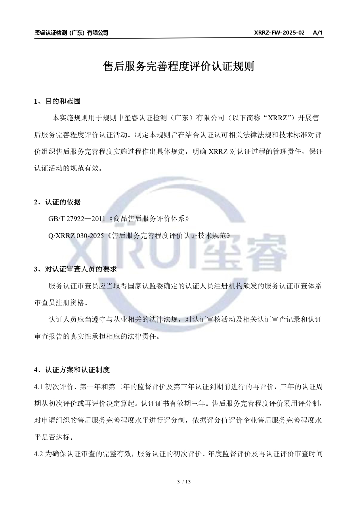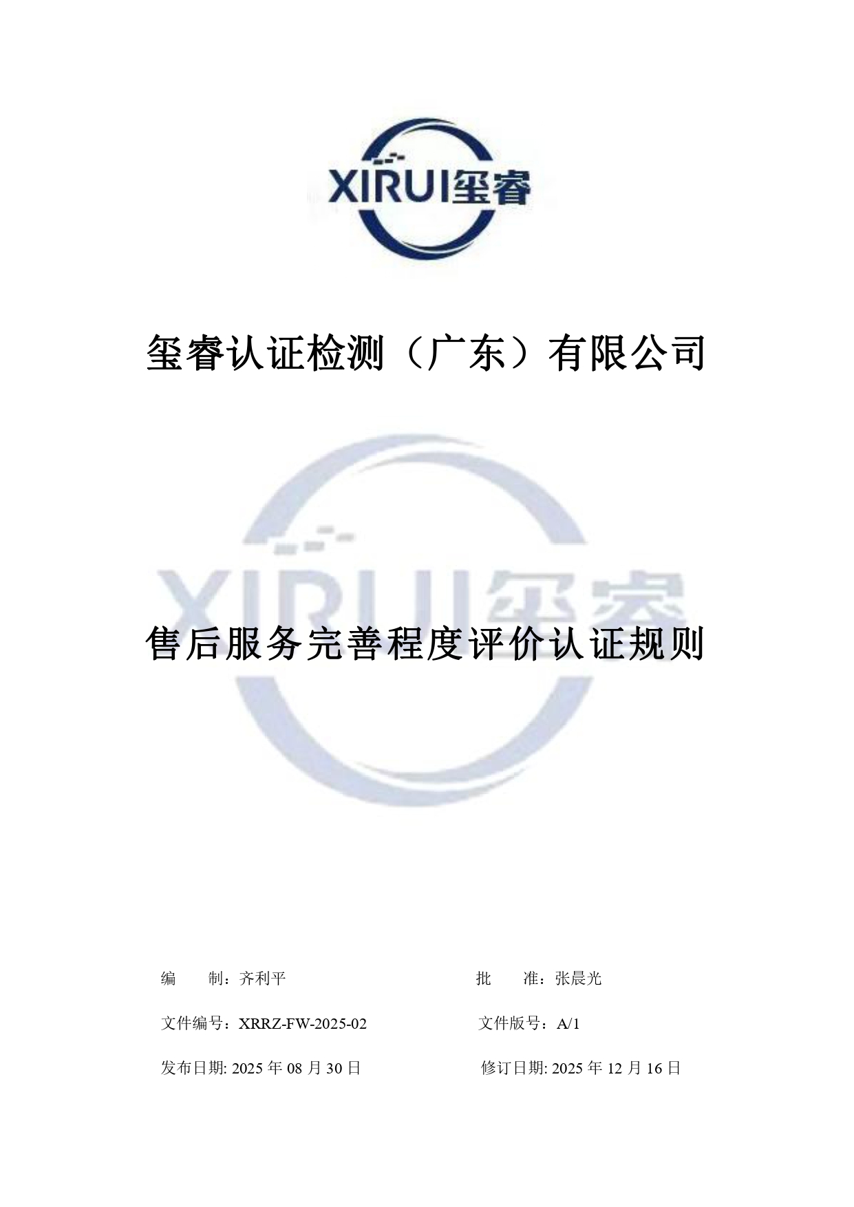 售后服务完善程度评价认证规则公示