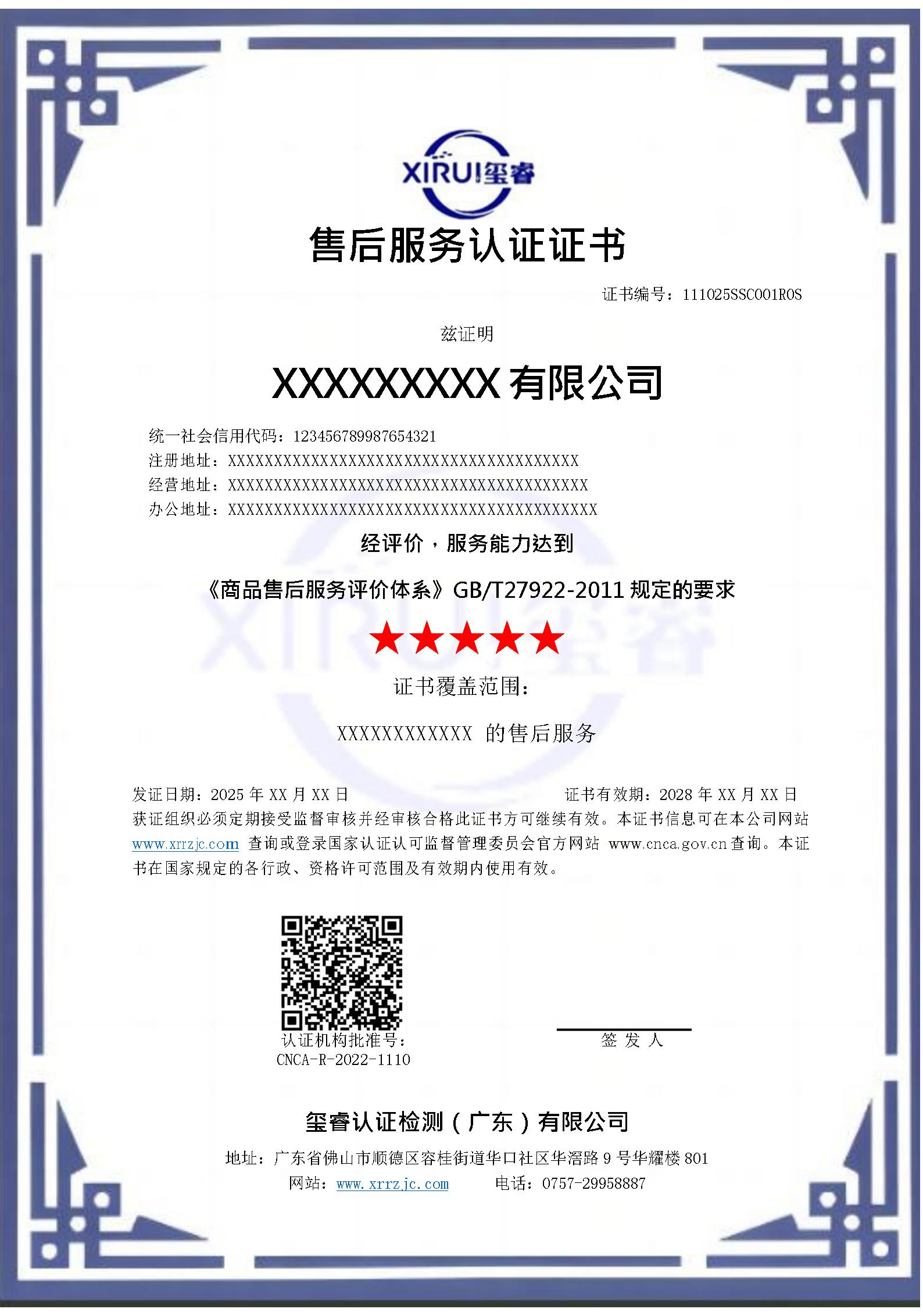 XRRZ-FW-2025-01 商品售后服务认证规则公示