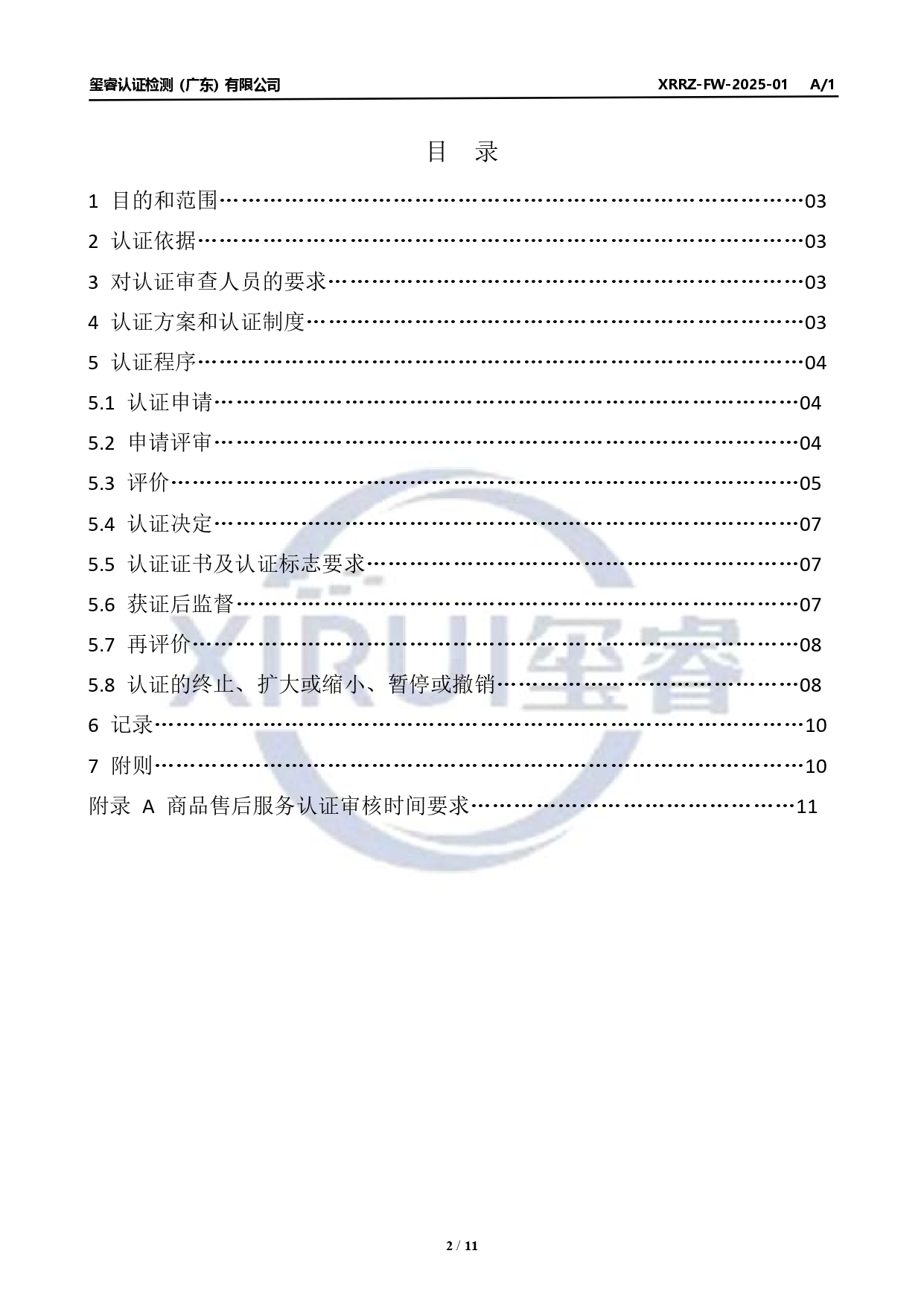 XRRZ-FW-2025-01 商品售后服务认证规则公示