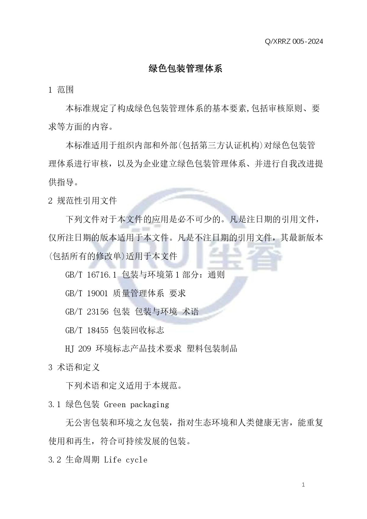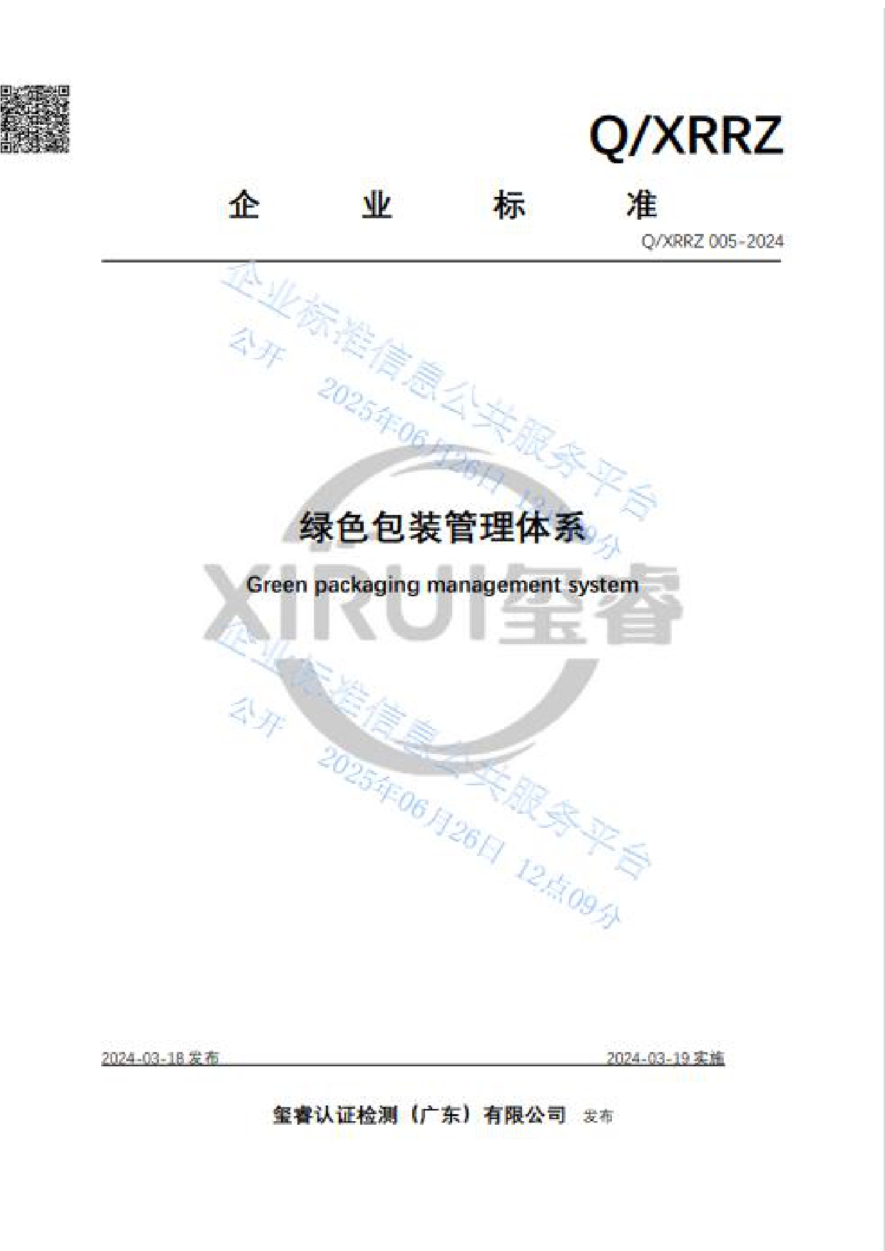 绿色包装管理体系公示