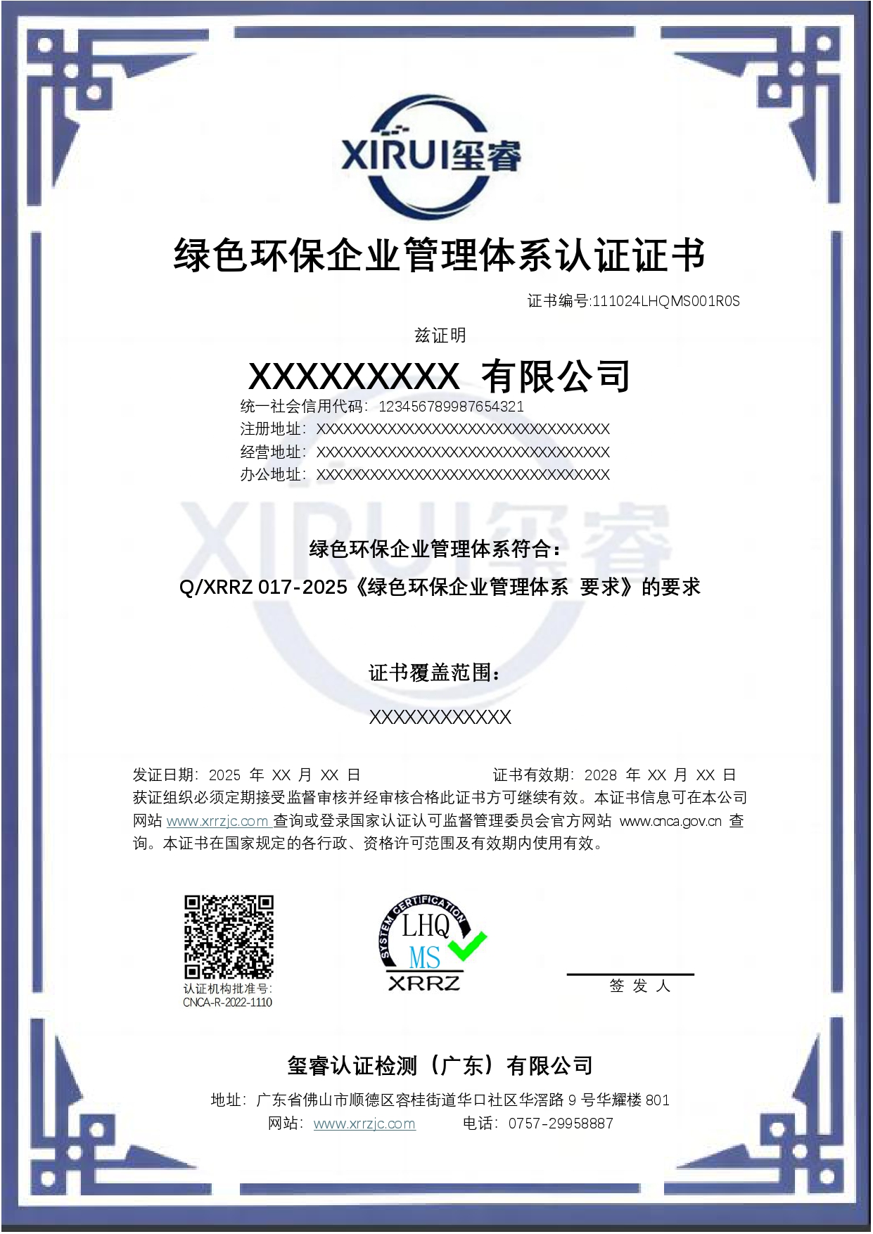 绿色环保企业管理体系认证证书