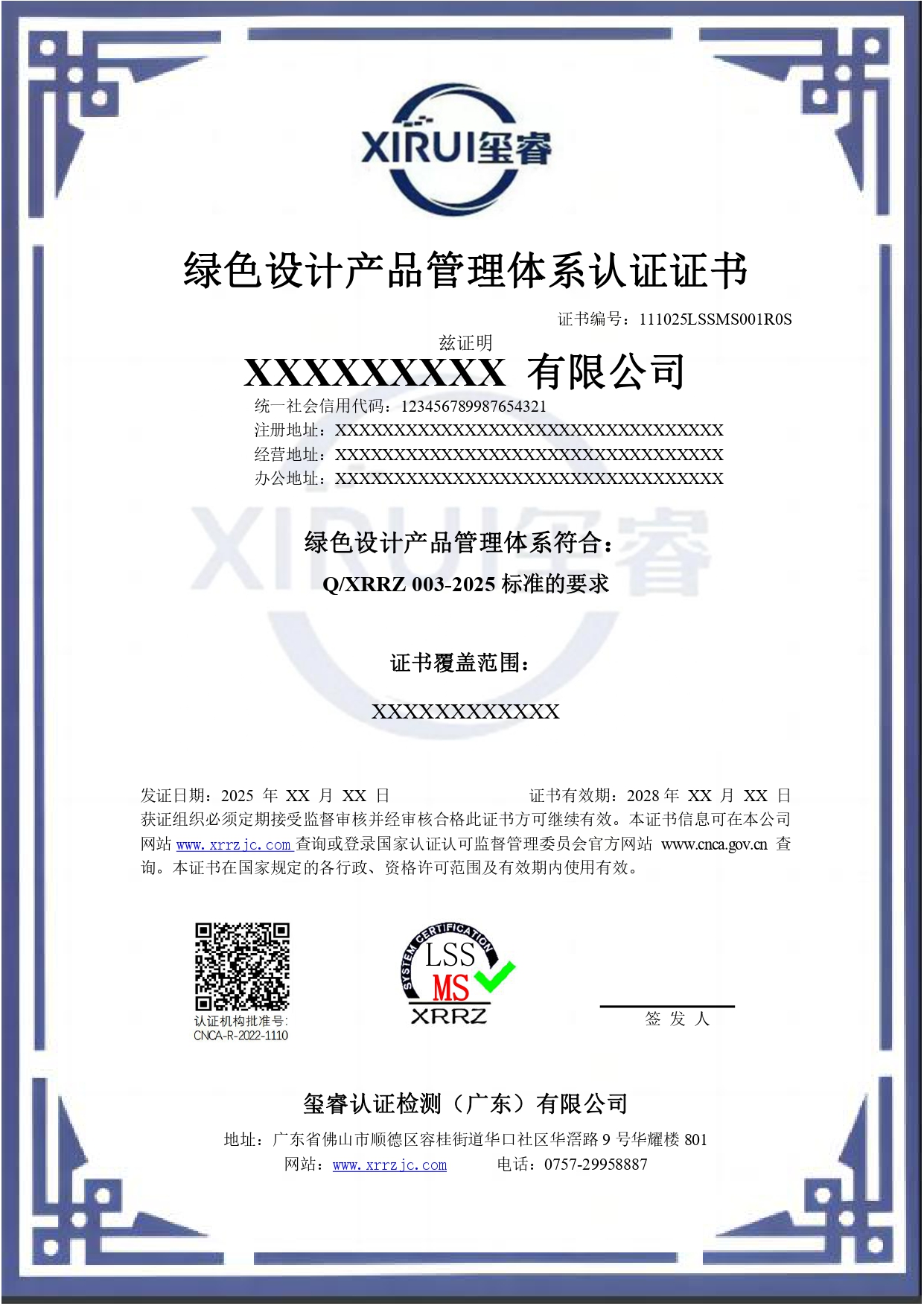 绿色设计产品管理体系认证证书