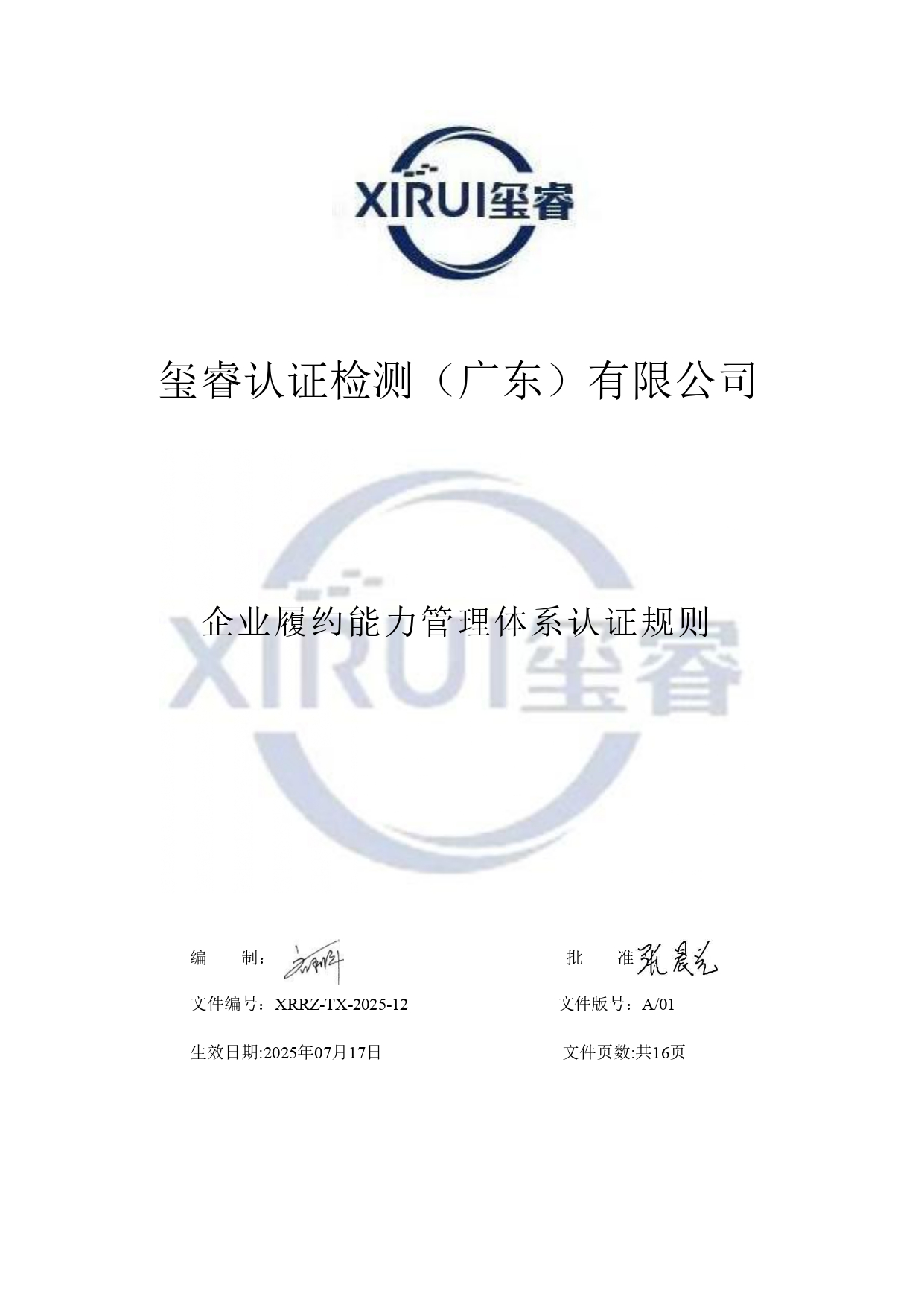 企业履约能力管理体系认证规则公示