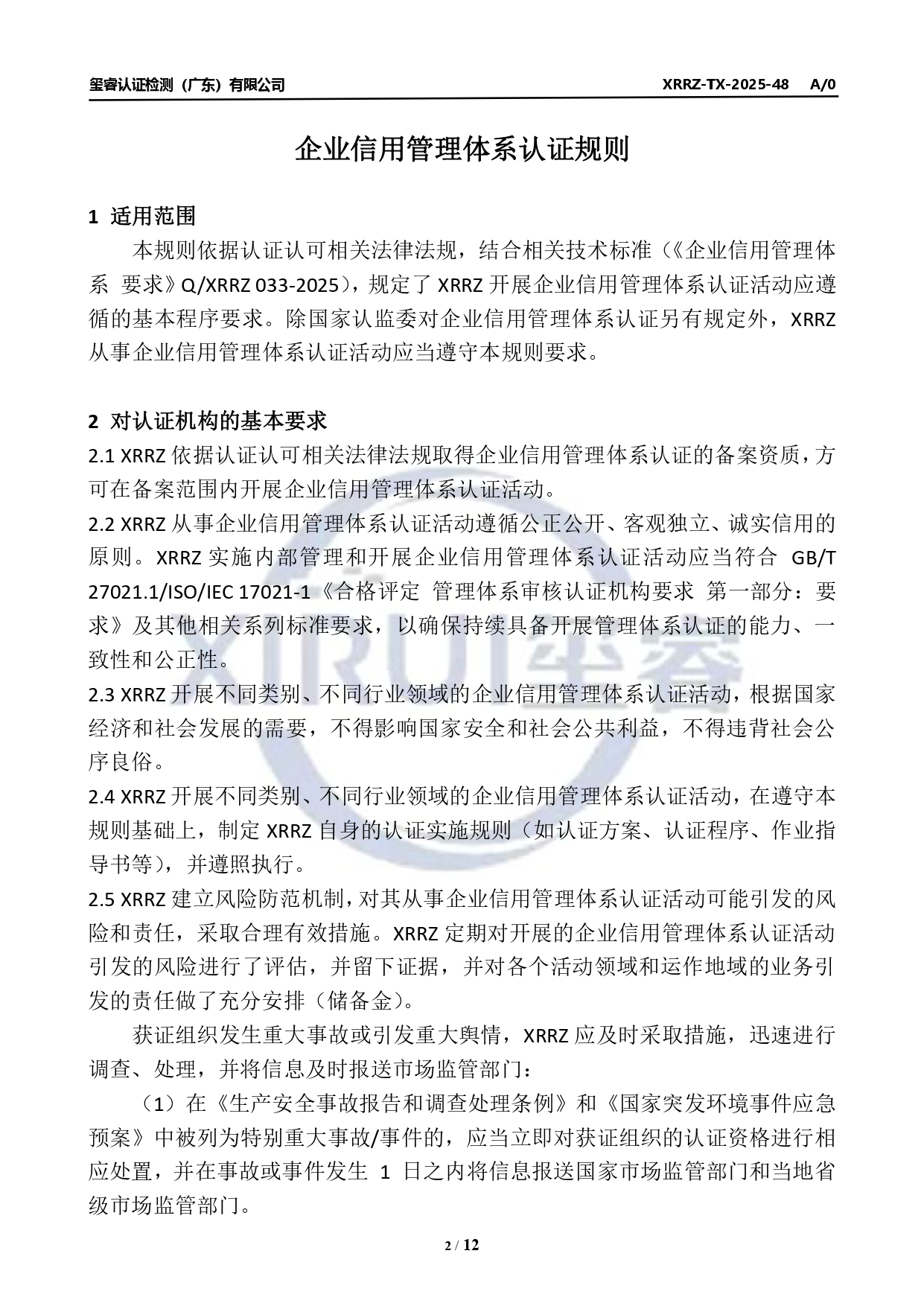 企业信用管理体系认证规则公示