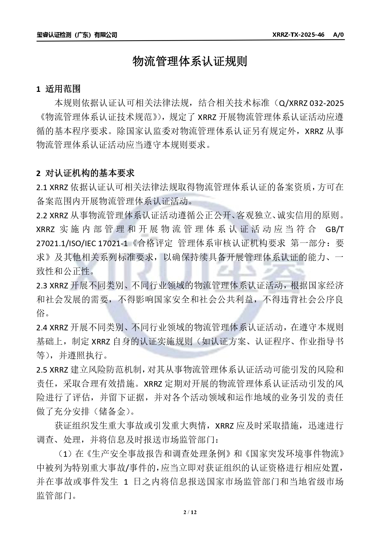 物流管理体系认证规则公示
