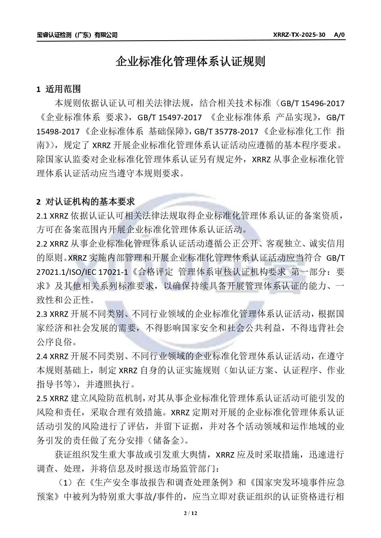 企业标准化管理体系认证规则公示