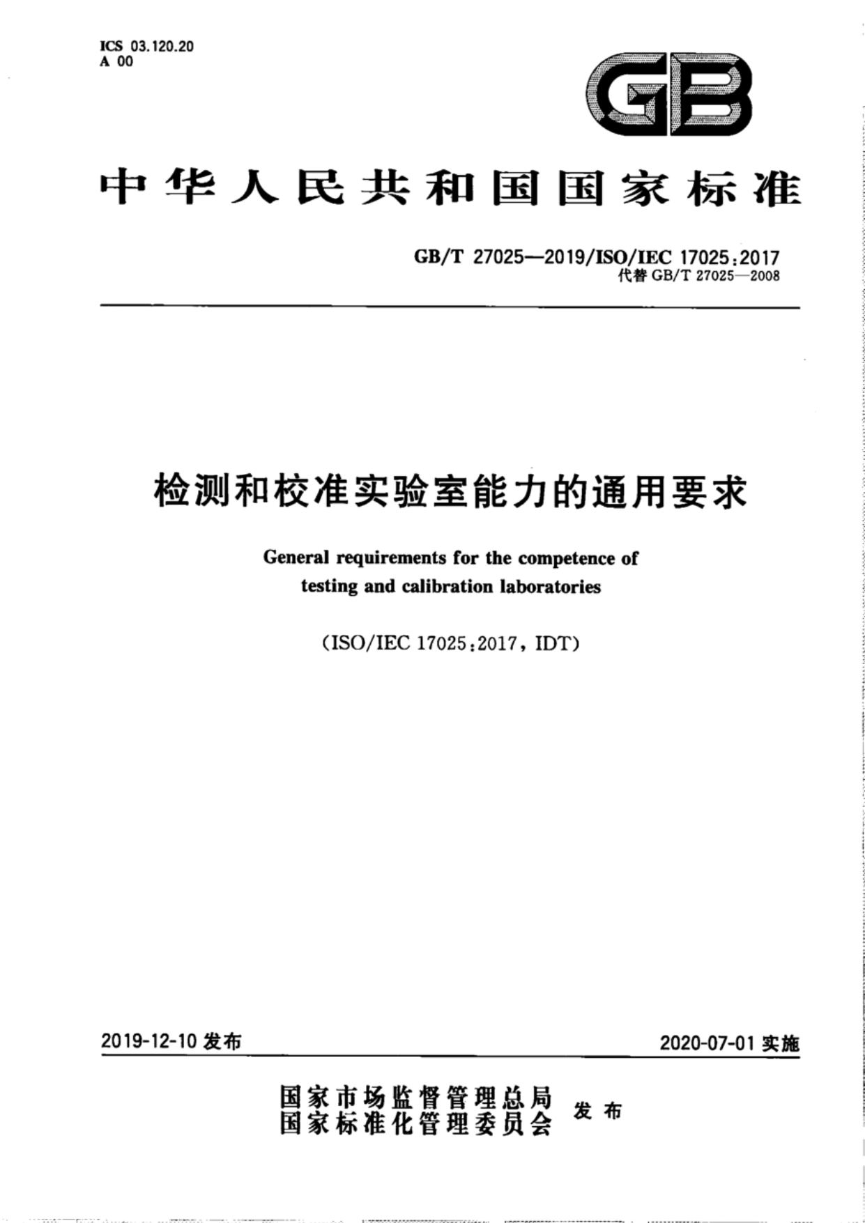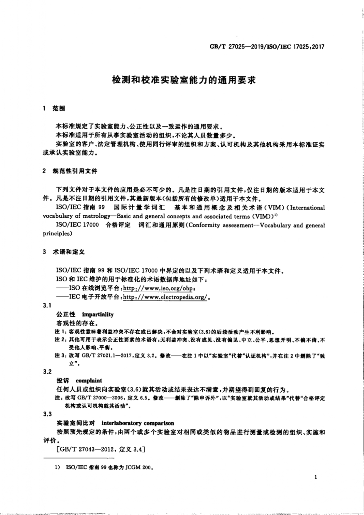 检测和校准实验室能力的通用要求